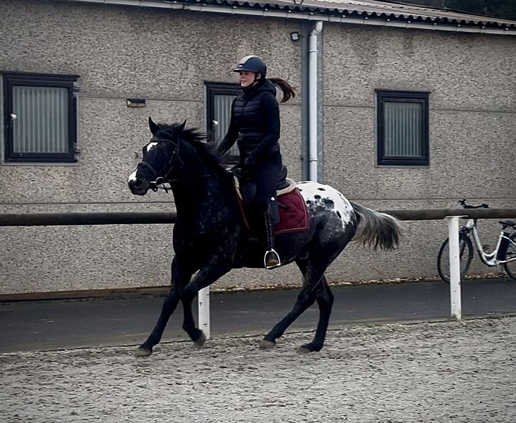 Name: Perfi Breed: Crossbreed Gender: Gelding Date of Birth: May 30, 2021 Age: 4 years Height: 15.0 hh Color: Appaloosa Sire/Dam: Unknown Temperament: friendly and sociable, curious, intelligent, attentive, sensitive Training/ suitability: ridden, leisure riding, dressage Trail Experience: reliable, fearless, confident alone and in groups Health: dewormed, vaccinated, barefoot, eczema-free, teeth checked, osteopathically treated Stabling: box stall, open stable Special Features: trailer-safe, herd-friendly Please note that the traits listed are based on our personal assessment and do not constitute guaranteed characteristics. Price: €5,900 (gross) Have we sparked your interest? To give you a better impression of Perfi, we are happy to send you a video of him riding. Of course, we are available for a detailed description of the horse, personal consultation, and to answer all your questions by phone. Feel free to contact us anytime via WhatsApp or call us at: +49 151 19487595 Our phone hours are daily from 7:00 AM to 1:30 PM and again from 8:00 PM. We look forward to hearing from you! A veterinary clinical or radiological pre-purchase examination can be arranged with your veterinarian. Perfi can be safely and comfortably delivered to his new home. We handle all necessary preparations and transportation so that your new horse arrives stress-free, well cared for, insured, and in good condition. Currently, we offer a carefully selected range of sale horses. With us, you are sure to find your dream horse. Visit us also on our website: www.marvinsroyalhorses.de Dear customers, we are happy to introduce you to our horses. We offer grooming, tacking, lunging, ground work, and trial riding in the riding hall, on the arena, or in the field, so you can get to know your new family member better. This service costs €40 per horse, with each additional horse €30, and is refunded upon purchase. Our address: Ferdinandstraße 50 53577 Neustadt-Wied Google Maps: marvinsroyalhorses