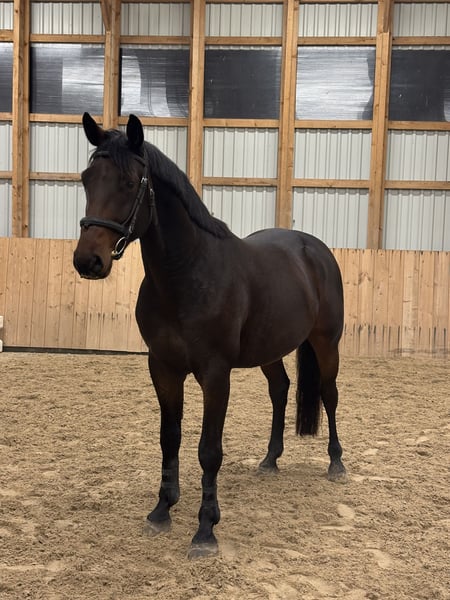 Caballo de deporte estonio (ESH) de gelding en venta “Easton” mide aproximadamente 1,65 m de altura. Es probable que siga creciendo, ya que los otros hijos de la yegua son todos de más de 1,70 m. Con un talento natural para el salto, demuestra agilidad, reflejos rápidos y una gran disposición para aprender. Su sire, Elvis Ter Putte, ya es conocido como un semental de élite. Con sus descendientes superando sus propias capacidades, más de 200 ya compiten a nivel internacional. Los otros hijos de la madre de Easton han llegado a nivel 130, y uno de ellos actualmente compite en más de 140 en EE. UU. El futuro de este joven caballo es muy prometedor. Se disponen de radiografías del cuello, la espalda y las patas, todas sin hallazgos relevantes. Para videos y más información, contacta a través de WhatsApp.