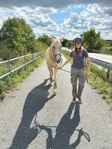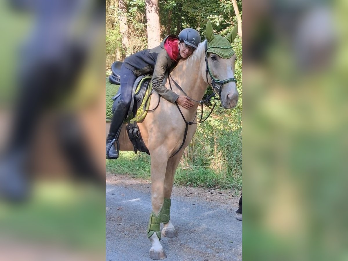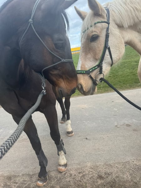 Zu verkaufen steht ein charmanter und Typvoller Palominowallach. Sancho am 29.05.2020 geboren und ca 165cm groß. Er ist nicht Beschlagen. Sancho ist ein sehr verschmuster und Menschenbezogener Wallach, der durch seine Palomino Optik sofort begeistert. Besonders viel Spaß machen ihm Ausritte und Spaziergänge ins Gelände. Bei der Bodenarbeit ist er immer motiviert dabei. Sancho kennt Doppellonge und ausgebundenes longieren. Aufgrund seines Alters ist Sancho kein Kinder oder Anfängerpferd. Er lässt sich lieb von älteren Kindern putzen. Ein Probereiten ist derzeit nicht möglich, da er länger nicht geritten wurde. Sancho wird auch an Händler verkauft. Bei Interesse und Fragen gerne per WhatsApp melden. Videos können geschickt werden. +4915739645591