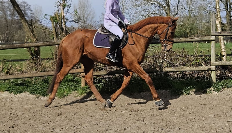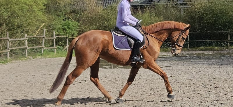 Rumi is an approximately 167 cm tall Irish Sport Horse gelding. This reliable and loyal leisure partner is perfect for the whole family, and he would also make an excellent schoolmaster. Rumi is a pleasure to ride; he is familiar with work in the arena as well as trail riding in his homeland. He is also accustomed to solid jumps and approaches them with great enthusiasm. In handling, Rumi is a sweetheart—gentle and easygoing in every respect. He is a straightforward and uncomplicated horse. Currently, he spends a lot of time outdoors, making him ideally suited for turnout in a herd. Rumi gets along well with all other horses. He has a recent clinical examination with no findings. If you are interested in him, we look forward to your call at: 0177/2721831.