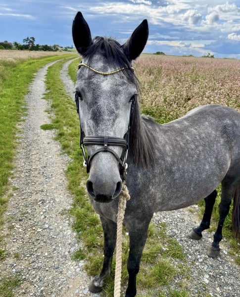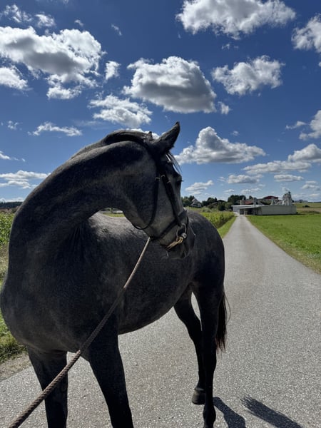 Catch Me If You Can, for sale. I am looking for a supportive home for Catchy. She is not only a real eye-catcher but also a promising, affectionate young horse. Catchy is growing up well-socialized in a herd environment and is already familiar with children, dogs, trailer loading, the farrier, and trail riding as a companion horse at the time of sale. Price will increase with further training. In the last two pictures, you can see her mother and father.