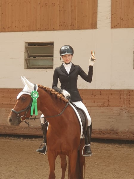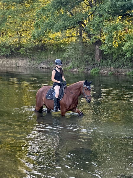 Young mare for sale. She has successfully completed this years competition season in dressage (level A) and show jumping (80 cm). She is very well-behaved and used to hacking both alone and in a group. Her height is abbout 154 cm. She is promising. Suitable for both beginners and experienced riders. She is especially known for her calm and stable character. We are her first owners.