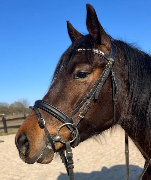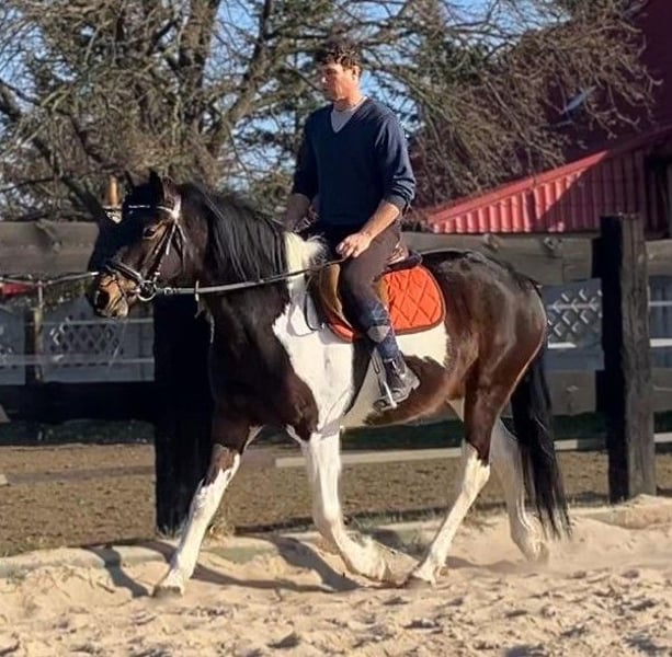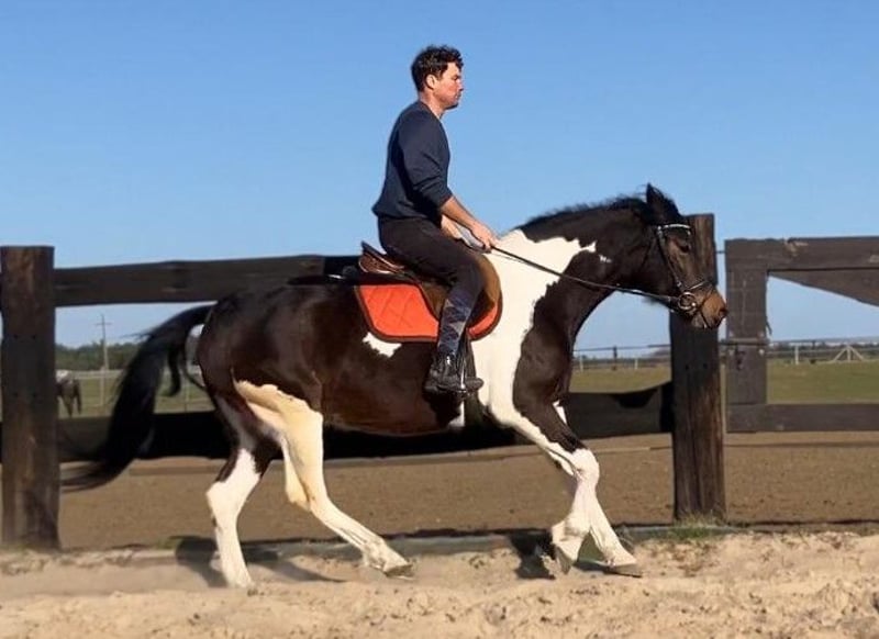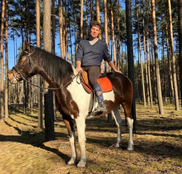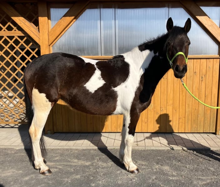 Zum Verkauf steht eine 4-jährige Stute mit einer außergewöhnlich schönen, dreifarbigen Scheckung, die sofort ins Auge fällt und sich deutlich von der Masse abhebt. Neben ihrer beeindruckenden Optik überzeugt sie vor allem durch ihren hervorragenden Charakter – sie ist äußerst lieb, ruhig und absolut unkompliziert. Die Stute ist angeritten und geht sicher in allen drei Grundgangarten. Sie zeigt sich stets kooperativ, aufmerksam und brav unter dem Sattel. Dank ihres ausgeglichenen Wesens eignet sie sich auch für weniger erfahrene Reiter unter Anleitung sowie ideal als Freizeitpferd. Im Umgang sowie in der Herde ist sie unkompliziert und nicht dominant. Sie ist an ein abwechslungsreiches Umfeld gewöhnt und kennt sowohl landwirtschaftliche Maschinen als auch Straßenverkehr, wodurch sie gelassen und nervenstark ist. Auch im Gelände überzeugt sie auf ganzer Linie – sie geht sowohl alleine als auch in der Gruppe ruhig und sicher. Eine wirklich besondere Stute, die Schönheit, Charakter und eine solide Grundausbildung vereint. Für sie wünschen wir uns ein liebevolles und verantwortungsbewusstes Zuhause, in dem sie die Wertschätzung erhält, die sie verdient. Standort: Polen, ca. 70 km von Görlitz entfernt (ca. 40 Minuten). Transport: möglich.