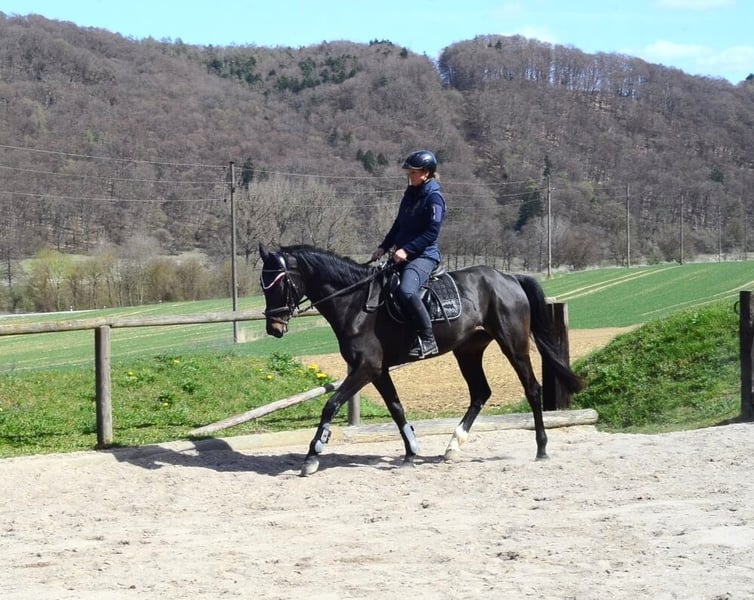 Hübsche Stute in dunkler Jacke mit guter Bewegung und Talent am Sprung. Angenehm zu sitzen, einfach durchs Genick. Ein nettes Damen-/Junioren-Reitpferd mit viel Reitkomfort. Eine tolle Empfehlung für den vielseitigen Anspruch. Für Dressur, Springen und Geländeausritte.