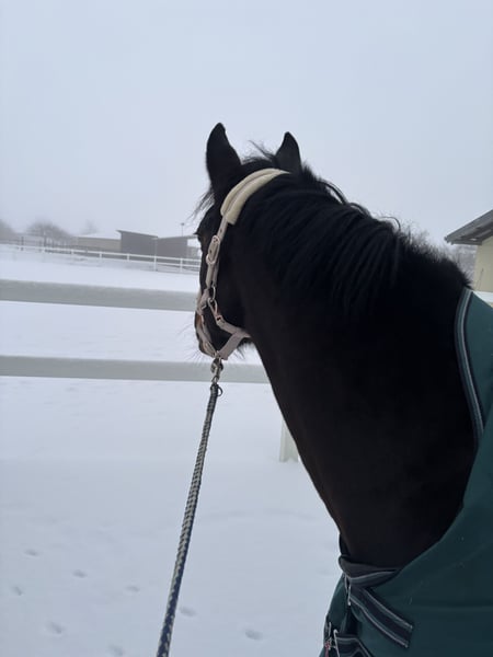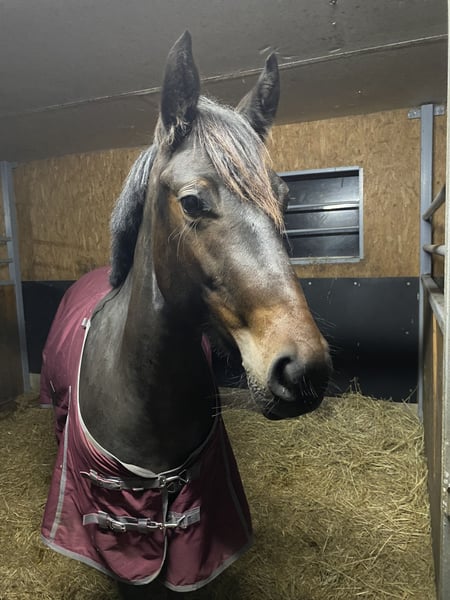 Akira is a sensitive, honest horse with a strong character, seeking experienced and dedicated owners. She is not suitable for beginners but is always manageable and reliable in daily handling. She is well-schooled, fearless in the outdoor arena, and enjoys going forward in the terrain. Additionally, she shows great enthusiasm for jumping. Akira needs regular and meaningful physical and mental activity and is therefore looking for a handler who has the time, patience, and joy in consistent work. She has no vices such as rearing, biting, bucking, or bolting. With trusting and fair treatment, she is a versatile leisure horse open to many shared activities. Akira exhibits a slight gait irregularity that does not limit her movement or her capacity for work. She is fully sound, people-oriented, enjoys being pampered, and impresses with her pleasant nature.