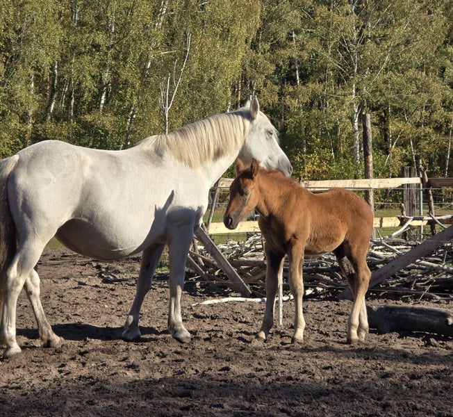 Aufgrund privater Umstände und Krankheit, verkaufe ich unsere liebevolle Warmblut-Stute mit Fohlen – ideal für Freizeit und Hobby...Fohlen zum selber ausbilden...Er ist schon kräftig und wird mal groß und stabil...ein kleiner Frecheachs mit viel Charme / steht schon mit den anderen in der Herde... Diese wunderschöne Schimmel-Stute wurde im Jahr 2019 geboren und überzeugt durch ihr freundliches Wesen und ihre Art. Sie ist sehr verschmust...mit einem Stockmaß von 155 cm bietet sie die perfekte Größe für vielseitigen Einsatz....Sie ist sehr Ranghoch in der Herde... Sie ist eine Warmblut-Dame, die sich bestens für den Freizeitbereich eignet. Durch ihr Fohlen muss sie wieder angeschoben werden...Ob Ausritte, Spaziergänge oder entspannte Tage im Gelände – sie ist angenehm im Umgang-sofern der Reiter Wissen hat...longieren klappt, am Putzplatz steht sie artig... Im Pass heißt sie Gucci, wir nennen sie liebevoll Maxi...Ihr Fohlen heißt Manoubi und ist am 10.09.2025 geboren... Maxi ist vollständig geimpft / Fohlen hatte Tetanus Serum und jetzt den Schutz der Mutter / und hat einen Ungarischen Pass... Beide sind schon Hänger gefahren...Manoubi ist Halfterführig und kennt das Fohlen ABC...steht auch schon am Putzplatz... Bei Interesse oder für weitere Informationen stehe ich gerne zur Verfügung unter 017684396957...Videos auf Anfrage Kennen Offenstall und Box ! Ich möchte Sie in gute Hände Wissen! Ein Kennenlernen lohnt sich! ● Preis 1.500€ ● KEINE RATENZAHLUNG! ● Zubehör gibt es dazu für beide / Halfter+Stricke, Putzzeug, Trense und Decke