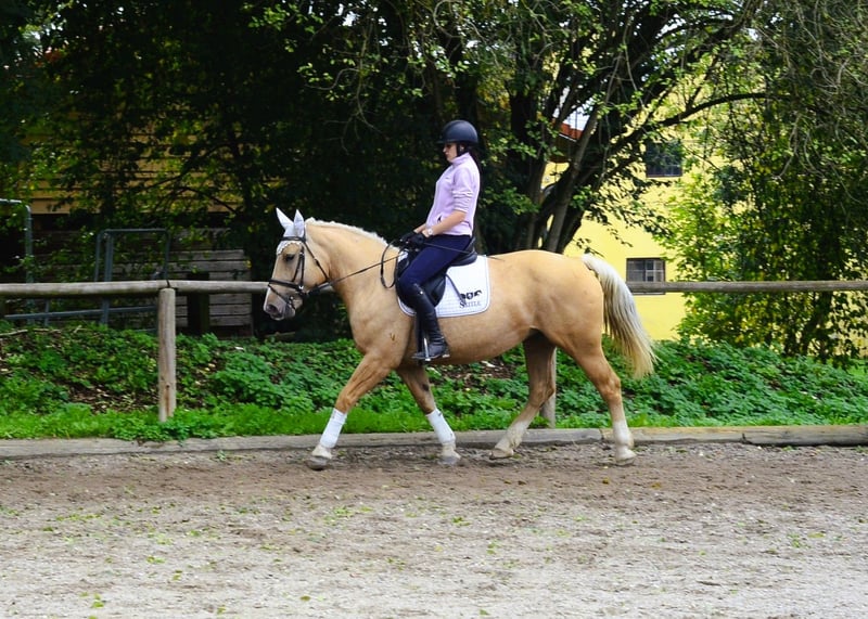 Pristina ist eine liebenswerte Palomino-Stute, unkompliziert in ihrer ganzen Art. Beim Reiten ein absoluter Schatz, für jeden Spaß zu haben. Sie ist erfahren und nervenstark, kennt auch Halle, Platz und Gelände. Mit Herz am rechten Fleck.