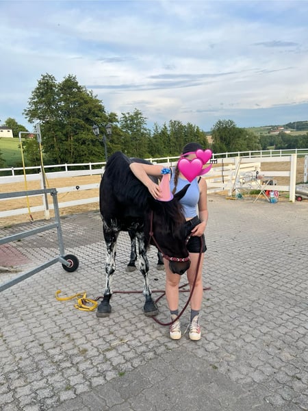☁️Ábránd (ungarisch „Tagtraum“) ist eine lernwillige, menschenzugewandte Stute mit viel Herz. Sie genießt die Nähe zum Menschen und würde ihrem Bezugsmenschen am liebsten überallhin folgen. 🌟Dressurmäßig befindet sie sich derzeit auf A-Niveau. Sie ist fein zu reiten und geht fast von alleine – auch bei unerfahrenen Reitern – in eine schöne Anlehnung. Besonders angenehm ist ihre gute Reaktion auf Stimmhilfen, wodurch auch Anfänger große Freude mit ihr haben. Dabei ist sie stets vorsichtig und aufmerksam.🤗 In der Boden- und Freiarbeit ist Amy motiviert und engagiert dabei. Sie reagiert sensibel auf Körpersprache und Stimme und arbeitet konzentriert mit. Auch bei der Stangenarbeit zeigt sie sich brav und motiviert. Sie ist auch gebisslos fein zu reiten. 🌳🍀Beim Spazierengehen ist sie sowohl alleine als auch in der Gruppe sehr zuverlässig und brav. Beim Ausreiten ist sie in der Gruppe unkompliziert. Alleine benötigt sie derzeit noch etwas Sicherheit – entweder vom Reiter oder durch eine begleitende Person am Boden. Da sie bei mir nicht viel alleine ausgeritten wurde, lässt sich dies mit ruhigem Training sicher gut aufbauen. 🦄Amy ist ein energiegeladenes Pferd mit Charakter, das hin und wieder etwas „Go“ mitbringt und manchmal umweltorientiert sein kann. Auf Kinder und Anfänger passt sie jedoch gut auf. Da sie gelegentlich schreckhaft oder guckig sein kann, sollte sie zwischendurch von einer erfahrenen Person gearbeitet werden. Dabei wird sie jedoch nie böse, sondern höchstens einmal ein etwas stur. 😉 Im täglichen Umgang ist sie sehr unkompliziert. Beim Putzen, Trensen, Aufsteigen und generell im Handling zeigt sie sich immer sehr brav. Sie kann problemlos ohne Sattel oder mit Pad geritten werden! Aktuell steht sie nachts in der Box und tagsüber am Paddock. Offenstall kennt sie ebenfalls und fügt sich schnell in eine Herde ein. Sie ist ein sehr soziales, herdenverträgliches Pferd. 🐴🐴 Ein Kennenlernen und Probereiten sind nach Absprache jederzeit möglich. Bei ehrlichem Interesse werden gerne weitere Fotos und Videos zugesendet.😊 Die Möglichkeit, sie zur Verfügung zu nehmen, ist ebenfalls gegeben. Ein passender Sattel sowie weiteres Zubehör können gerne miterworben werden. 👍