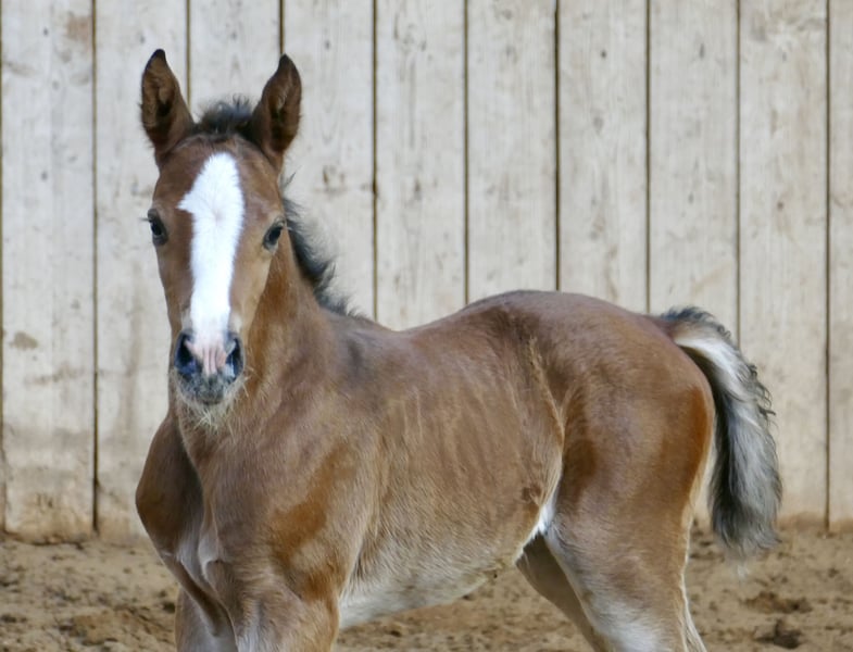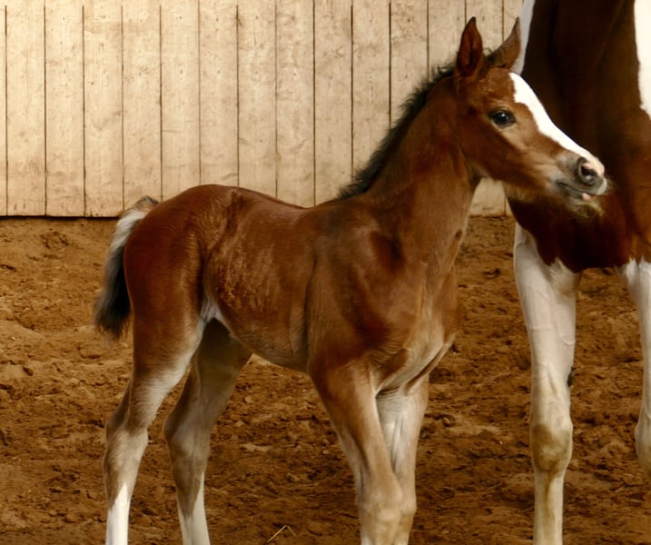 Chubella Magic A Stutfohlen von Chubakko x Zinedine x Ismo aus der Zaubergirl Ein außergewöhnliches Stutfohlen mit Ausstrahlung, Qualität und einem Pedigree, das keine Wünsche offenlässt: Chubella Magic A vereint moderne Springgenetik mit Charme und Eleganz. Väterlicherseits stammt sie von Chubakko, einem hochinteressanten Holsteiner Springhengst, der durch Vermögen, Reflexe und Rittigkeit überzeugt. Seine Nachkommen zeigen sich bereits früh mit viel Übersicht am Sprung, elastischen Bewegungen und hervorragender Einstellung – echte Sportpferde mit Perspektive. In der zweiten Generation steht Zinedine, ein international hocherfolgreicher Spitzenvererber, der unter Ludger Beerbaum auf höchstem Niveau im großen Sport erfolgreich war. Er steht für grenzenloses Vermögen, Vorsicht und Leistungsbereitschaft und gibt diese Qualitäten zuverlässig an seine Nachkommen weiter, die weltweit im Sport überzeugen. Abgerundet wird dieses exzellente Pedigree durch Ismo, der für bewährte Leistungsgenetik und solide, leistungsstarke Mutterlinien steht – eine wertvolle Basis für Rittigkeit, Härte und Verlässlichkeit im Sport. Chubella Magic A selbst präsentiert sich als typvolles, langbeiniges Stutfohlen mit viel Ausdruck und natürlicher Eleganz. Sie besticht durch ihr korrektes Fundament, eine schwungvolle, elastische Bewegung und einen klaren, aufmerksamen Charakter. Bereits jetzt lässt sie erkennen, dass sie das Potenzial ihrer hochkarätigen Abstammung in sich trägt. Eine vielversprechende Nachwuchsstute für Zucht und Sport – modern gezogen und mit dem gewissen „Magic“, das sie besonders macht.