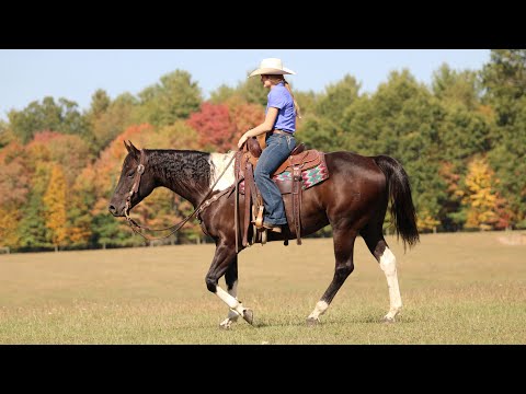 CONSIGNOR CONTACT: Rolling Rock Farms 814-924-3828 LOCATION: Miola PA BREED: Paint REGISTERED: Yes REGISTERED NAME: DB BEAU MITZI COLOR: Black paint HEIGHT: 15.2 AGE: 6 GENDER: Gelding Beau is the kind of horse you can count on day in and day out. He is a true gentleman, at just six years old he already rides like a seasoned veteran, making him a wonderful partner for riders who want a dependable horse they can enjoy for years to come. From the moment you walk into the barn he is friendly and easy to catch whether he has been in a stall or turned out in the pasture. He stands quietly to be brushed, saddled, and bathed and he loads and hauls good and without a fuss. On the trail Beau is simply outstanding. He will ride out all day on a loose rein, happy to travel in a group or head out alone. He has been exposed to dogs, farm equipment, and every sort of country terrain and nothing seems to bother him. Water crossings, wooded trails, open fields, or rocky hillsides, Beau steps through or over it all with confidence and surefooted ease. Whether you are looking for a weekend trail companion or a partner for long adventurous rides he is the kind of horse that makes the journey relaxing and fun. Beau’s talents do not stop at the trail. In the arena he is solidly broke and responsive with a true one hand neck rein, smooth lope, and the ability to lope off and catch both leads with ease. Will side pass, and offers a big deep stop. Beau is comfortable bareback and bridleless, has been roped off of, and will even carry the American flag with confidence. Thanks to his gentle nature and training Beau would be a perfect match for a confident beginner looking for a step up horse as well as riders who simply want a trustworthy versatile gelding. He is the same horse every time you ride even after time off and always saddles up and rides off like a pro. Beau sells with a current negative Coggins and a rabies vaccination so he is ready to travel and settle into his new home right away. Horses like Beau, young, well mannered, and already this seasoned, are hard to find. For questions or to arrange a time to meet this exceptional gelding please contact Ethan Shultz at (814) 924-3828.