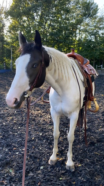 Dear all, I am looking for a new soulmate for my beloved mare Blue. She deserves a person she can trust, who will support and challenge her, and walk through life with her. This sale is not urgent and will only take place if everything fits perfectly. Blue is 7 years old and well-trained under saddle. She was in good Western training at the beginning of the year. She is a very sweet and reliable horse with a strong desire to please. In the field, she is also an absolute trustworthy partner when riding alone. However, she is not a beginner's horse (but which horse really is, except for a school horse?), as she needs honest and confident feedback from her rider. Since Blue has lived her entire life in an open stable and only feels truly comfortable there, I will only consider a placement if she can also move to an open stable (she is currently in a mixed herd and is extremely well-compatible). The saddle that is fitted for her can be purchased as well (additional equipment such as bridle/bits would also be included free of charge). I look forward to receiving sincere inquiries.