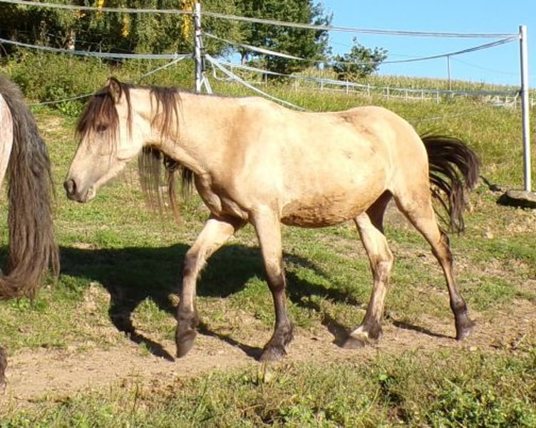 Bon Voyage, bei uns Trixie genannt, ist die Tochter einer Tinkerstute und eines Paso Fino Hengstes. Sie hat auch viel Tölt vom Vater mitbekommen. Leider ist sie für uns zu klein und sucht deshalb ein schönes Zuhause als Fahr- oder Kinderpony. Sie ist lieb und ohne Unarten, leider aber noch recht scheu. Sie ist bisher noch nicht weiter gearbeitet, also nur halfterführig. Aufgewachsen ist sie in einer gemischten Herde im Offenstall, wö sie auch noch lebt.