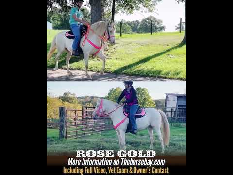 Rosy is a homebred young mare, raised with care, and it shows. She was only backed three times as a three year old, started under saddle as a four year old, then put into real training when she was five. Our goal is to have a horse that is mature before the true under saddle work begins, to ensure a sound riding companion for many years to come. Lots of groundwork and desensitization were the early goals, and this has made Rosy a sensible mount. I am older and wanted to make sure if I drag my leg over my horse’s croup, there is no flinching or startling. Rosy is fine with that! She “rates your seat” and if you sit deep in the saddle, she is ready to stop for you, no problem. If you touch the reins and say “Whoa” she is immediately stopping all forward motion! But Rosy is no deadhead! She is always ready to head out on the trail, lively and looking to see what is coming up. She is not spooky, she might startle briefly at worst, not whirling around or scooting sideways, and she has never tried to bolt or rear. Rosy backs easily with a slight pull and release, flat walks easily, and picks up speed with the touch of a calf or a kiss. She also has a very nice lope, though we don’t ask her often. While Paso Finos are known to be sensitive, Rosy is sensible! Never bothered by fly spray or bathing, and excellent for deworming, vaccines and farrier work. Though she is currently barefoot, she was shod a couple of years ago and behaved just fine. Rosy stands 13.2 hands on a stick. She is a stout little mare and handles me at 5’6″ just fine, as you can see in the pictures and video. She weighs right at 800 pounds on a tape. This is not a horse you have to go catch; she runs to you when you call her name and whistle! She vastly enjoys having all her itchy spots scratched; and she has a lot of itchy spots! Loves her wither, jowls, chest, and her udder scratched. We had to discourage her love of having her tailbone scratched because she was backing up to people for that and we decided it was a bit rude. Rosy is a perlino, and produced a gorgeous palomino colt when bred to a chestnut stallion two years ago. Her dam was a buckskin, dire a perlino, and if bred to a bay or black, she should produce buckskin. Rosy has a very comfortable gait, not extremely fast like a show-ring Paso Fino, but a shorter stride than a Walking Horse, which makes for less back and forth motion, and that helps for those with back problems. If collected up, she can do a more typical Paso gait, but as our focus has been on comfort rather than style, we don’t often ask her for that. Rosy stays fat on air, it seems, and like most smaller horses, she should have limited green grass. Early this summer we had an episode of what initially appeared to possibly be laminitis. However, Rosy came through that with no lasting problems, both our certified journeyman farrier and our equine-exclusive veterinarian have pronounced her sound, and I can provide her X-rays showing absolutely zero rotation. She is riding around barefoot and sound. From my point of view, Rosy’s worst fault is she appears marish in a stall when fed. She pins her little ears and snakes her neck out but has never nipped or acted out. I love mares, so this is no surprise to me, I just go in with her and shove her head away from the bucket till her ears come up! Just want to be completely up front, this mare means a lot to me. Rosy is for sale as we are downsizing and moving nearly 2000 miles away. She was not bred to be a sale horse, but circumstances sometimes dictate our decisions. I certainly welcome questions, be patient on a reply as I really am prepping for a move and have a lot on my plate! But would love to talk with you about Rosy, I have all her background, so no unknowns here! Please be aware due to the upcoming move, Rosy will have to be picked up here no later than November 22. Thanks!