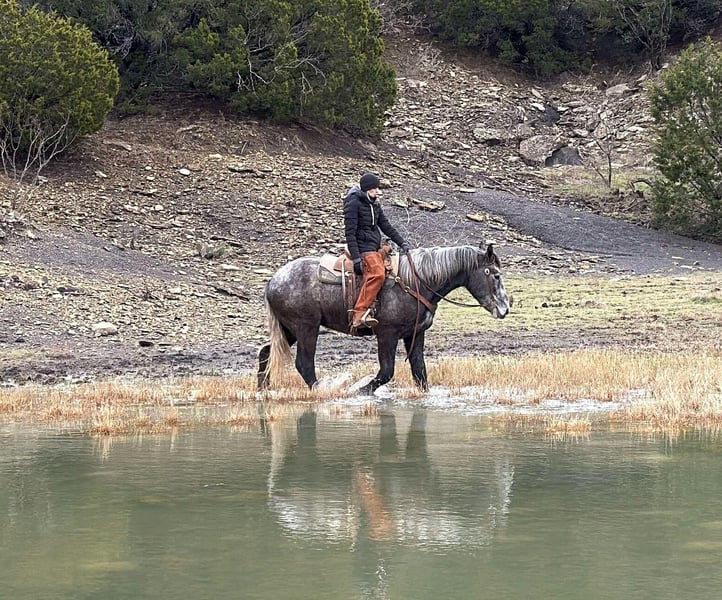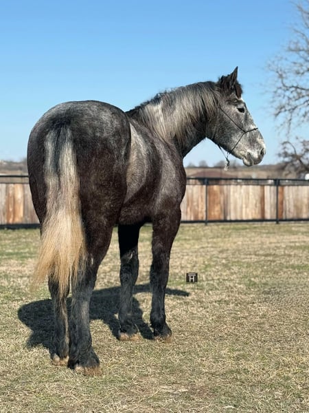 ONLINE AUCTION Place your bids at www.PlatinumEquineAuction.com Starting Bid $3500 Auction ends March 2nd, 2025 Need a new saddle? Check out White Rock Saddles on our website or Facebook! Blue is a 3 year old Draft Cross gelding standing 16.3 hands with all the dapples you could ask for. He is the kindest eyed and old soul type that is very gentle and laid back. Blue has never hesitated to do anything we have asked of him and is amazing to ride out on the ranch and down the trails. He is broke to drive and traffic safe. Blue is soft in the face and has some collection, a nice stop, and moves off leg well. We think he would make an awesome fox hunter if you wanted to go that route! He hauls well to new places and will go out alone with confidence or cruise in a group. We have checked cows on him, he loves the water, and can climb up and down absolutely any terrain. While Blue is young, he has the true draft demeanor of being born broke and gentle. He has never offered any funny business and has great manners. We believe Blue could fit just about anyone and any program. He is sound and UTD. FMI call/text Holland Horse Co. Chanel 559-978-6320. We can help arrange shipping nationwide from Jacksboro, TX. ONLINE AUCTION Place your bids at www.PlatinumEquineAuction.com Starting Bid $3500 Auction ends March 2nd, 2025 Need a new saddle? Check out White Rock Saddles on our website or Facebook!