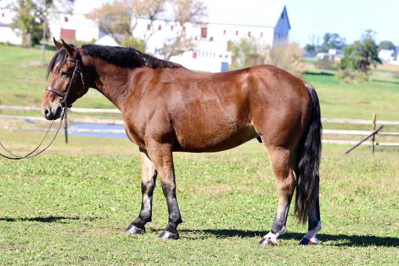 ⚜️𝐓𝐇𝐄 𝐅𝐀𝐋𝐋 𝐇𝐄𝐑𝐈𝐓𝐀𝐆𝐄 𝐂𝐋𝐀𝐒𝐒𝐈𝐂⚜️ Happening now thru MONDAY | NOVEMBER 3rd - Available EXCLUSIVELY on HorseBid's website! For more details and to register visit: www.Horsebid.com CONSIGNOR CONTACT: CM Farms 717-875-2061 LOCATION: Gap, PA BREED: Perch/QHX REGISTERED: No REGISTERED NAME: Nemo COLOR: Bay HEIGHT: 15.2 AGE: 4 GENDER: Gelding Meet ✨Nemo✨ -better known as “old faithful” (despite his age) in our barn. This young gentleman is a 4 year old, 15.2hh, perch/QHx, gelding. Nemo is like the nice guy at school you ignored but he turned out to be the most successful. Nemo has flourished into a handsome young man, with skill and brain to match. He’s not the jock of the barn, but if you want sweet and honest- it’s him. Not only does he drive, but he rides Western, English, Bareback, and he even knows tricks! He will lay down on command with a simple gesture, and while it might not bring you a ribbon in the show ring- it’s definitely a fun party trick to have on hand. The best part about Nemo is that he is SAFE, quite literally for anyone. In the ring, Nemo is quiet, sensible, and has a nice handle to him. It’s hard to find a 4 year old that has the brains and skill he possesses. He spins, sidepasses, leg yields, and is truly so reliable we would trust putting anyone on him. He’s toted around beginners, he is stocky enough for bigger riders, and he’s a saint for leadline with the kids. He has made more people smile than we can count. Whether you’re on his back, or just hanging out with him in the barn-he is guaranteed to make your day better. He is a fun ride, with walk to canter transitions both ways and a sliding stop just off of a simple “whoa” or shift in your seat. He can canter circles, pop over little jumps, or do really anything you ask without hesitation. He’s simple, safe, and rideable in every way. He trailers off property and acts the same as he does at home, and he’ll be the same genuine horse every time you pull him out. He’s sweet as pie, cute as a button, and one of the most honest horses we’ve come across. Always willing to please- and ALWAYS takes care of his rider. On the trail, Nemo will happily mosey behind the group, he’s never in a hurry, and is the type of horse that will remind you to slow down, and enjoy the simplicity’s of life. He’s not lazy, however he won’t go faster than you ask, and he is the type that’s happy to go anywhere you put him in the group. He will respond to cues out anywhere, and has even layed down on a beach and the open fields with multiple different riders! He’s so fun, one you can trust to put that first time rider or a guest on for a hack, and never have to worry. He’s the go-to in our barn for the less confident or beginner riders, and a saint to teach lessons on. Nemo is truly worth his weight in gold, and while he may be a plain bay on the outside, his brain and personality are so unique he is priceless. In the barn, Nemo will stand all day for affection and attention. He will let the kids brush and braid his mane and tail, and won’t move an inch. You can literally crawl underneath him and around his legs and he won’t budge. He’s safe in every aspect, and always behaved. He’s good to tack up, groom, bathe, and for the farrier and vet. He loads into the trailer without hesitation, and is never one to throw a fit or cause drama. He is so special in every way, and we’ve been blessed with our time with him. That being said we know his forever family is out there waiting for him, and we can’t wait to see all the great things he does in the future! Whether that be shows, being a husband/guest horse, or just someone’s best friend we know he will excel in every way. We love this little bay horse and want the best home for our Nemo.