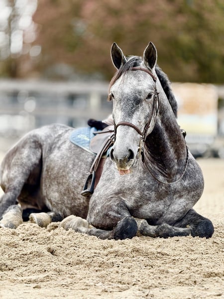 𝐉𝐀𝐍𝐔𝐀𝐑𝐘 ⭐️𝑨𝒍𝒍 𝑺𝒕𝒂𝒓 𝑳𝒊𝒏𝒆𝒖𝒑⭐️ Happening now thru MONDAY | JANUARY 26th - Available EXCLUSIVELY on HorseBid's website! For more details and to register visit: www.Horsebid.com CONSIGNOR CONTACT: CM Farms 717-875-2061 LOCATION: Gap, PA BREED: Perch/QH REGISTERED: No REGISTERED NAME: Flint COLOR: Grey HEIGHT: 15.3-16 AGE: 5 GENDER: Gelding Meet Flint! This gelding is a 5 year old, 15.3-16hh, Perch/QHx, gelding. He is the most gorgeous steel grey color, with a lighter athletic build that’s put together correct. He rides Western, English and Bareback, he’s broke to drive, and he even lays down on command! He is sensible, safe, and incredibly fun to have in the barn. On the ground, Flint is personable and so sweet. He has excellent ground manners, and will stand to groom, tack up, bathe or simply to fuss over. He’s a people person with a quiet personality and a gentle way about him. He has done lots of ground work, and his manners show it! He loads in and out of the trailer quietly, he acts the same off property, and he’s behaved in his stall. He gets along with all the other horses, and loves to play with the other young geldings. This gelding is easy to have in the barn, and easy to work with. Under saddle, Flint has the basics down in the ring. He walk trot and canters both ways, and he’s learning balance and to use himself properly. He moves off leg, and he is extremely light and easy through the hand. He has great brakes just off your seat or a “whoa”. He’s been a rewarding one to bring along, one you can really see the progress as it’s happening! He’s smart, a quick learner, and always willing to please. He has learned to be adjustable in the walk and trot, and he’s learning quickly at the canter. He’s not the spooky type, or one to have a big reaction to anything. He’s happy to chill and mosey around on a loose rein, or he’ll turn on his good work ethic- and he really seems to enjoy his job. He’s going to make someone an incredible horse, and we could see him excelling in any direction! On the trail Flint is a steady packer. He’s down to lead or follow, and he has a forward thinking walk with happy ears forward the whole time. He’ll babysit the amateurs, or pack the husband, and he’s very safe and sensible. He’s been out on hunter paces and didn’t get worked up at the busy environment. He’s always cool, calm, and collected. He has a cute jump on him, that will only continue to get better with age! He’s honest, straightforward, and an easy ride. He’s been desensitized to everything from tarps, flags, smoke, traffic, equipment, to all the wildlife you run into! Under harness, Flint has had an excellent start. He’s responsive to voice commands, and he’s always a solid citizen. He drives both single and double, and he has even pulled the sleigh! He is stunning under harness, and if someone wants to continue him that direction he will not disappoint! If you want a nice young prospect, (one that’s easy and rewarding to work with) to continue bringing along- Flint is your guy!