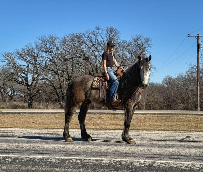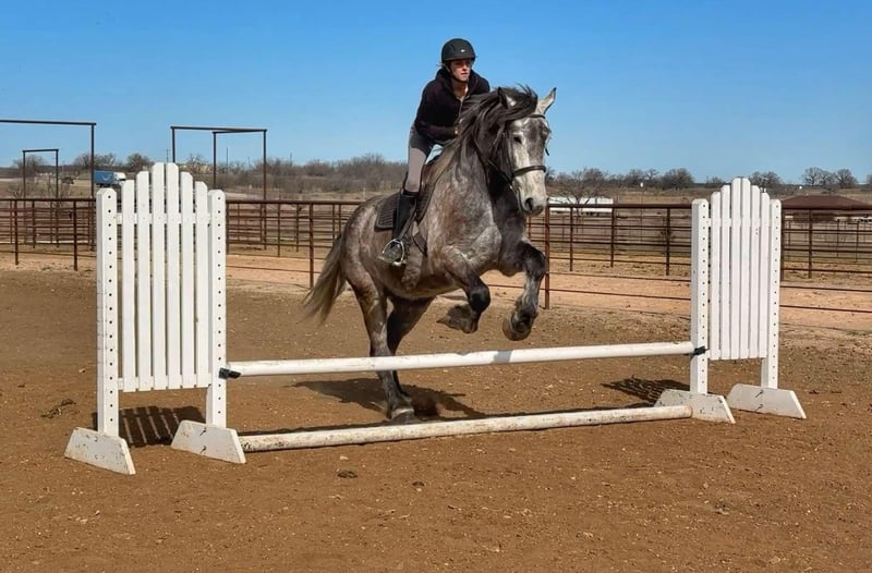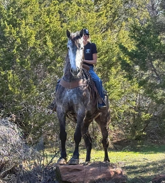 ONLINE AUCTION Place your bids at www.PlatinumEquineAuction.com Starting Bid $3500 Auction ends March 16th, 2025 Need a new saddle? Check out White Rock Saddles on our website or Facebook! Meet Garfield – a 16.1 Hand, 4 year old draft cross gelding. We absolutely love the gelding and have nothing but amazing things to say about him. He is GENTLE, kind, willing and very laid back. We feel that almost anyone could ride this guy. He is very easy to ride as well as handle on the ground. He rides Western, English, Drives single and double and is started over fences. He has a ton of potential as a fox hunter! We have taken him down the trails, freeways, and out to the ranch to both check cattle and just leisurely ride. He is not spooky, confident by himself, and a relaxing ride always. Garfield rides well in the arena and can walk, trot, and lope circles with a nice stop to him and natural collection. He is easy to catch, has great ground manners, loads, ties, bathes and is always on his best behavior. He is barefoot and sound/straight/clean legged. UTD. FMI call/text Holland Horse Co. Chanel 559-978-6320. We are located in Jacksboro, Texas and are happy to arrange shipping nationwide. ONLINE AUCTION Place your bids at www.PlatinumEquineAuction.com Starting Bid $3500 Auction ends March 16th, 2025 Need a new saddle? Check out White Rock Saddles on our website or Facebook!