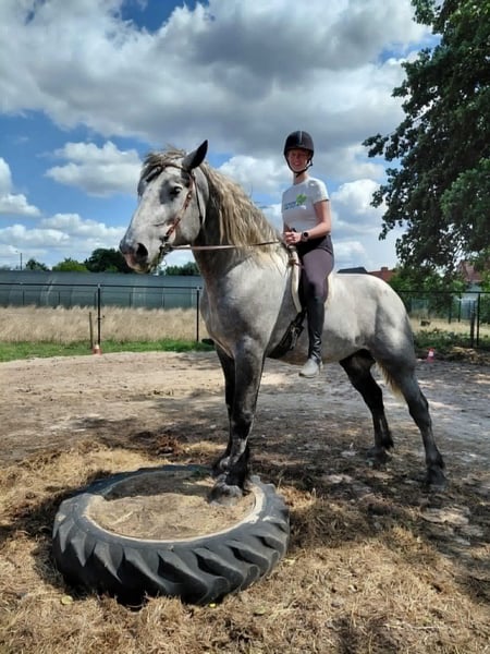 Sattelmak, Pistework, Bodenarbeit, Spaziergänge – er ist erst 4 Jahre alt und muss die Welt noch entdecken. Enormer Teddybär!!!