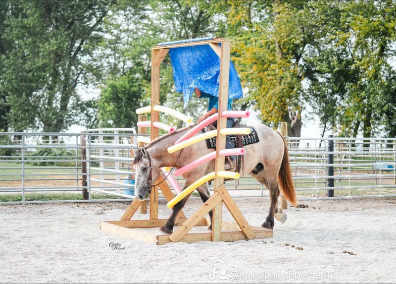 ONLINE AUCTION Place your bids at www.PlatinumEquineAuction.com Starting Bid $3500 Auction ends October 26th, 2025 Need a new saddle? Check out White Rock Saddles on our website or Facebook Badger is a stout built, 16.1hh, just turning 5 year old, grey draftcross gelding. He has been ridden every where that you could ask one to go… Lots of outside miles, down the trails, across the creeks, ditches, deadfall… he does it all! He handles any obstacles that are in his way, is safe to ride down the highways and through town as well. He rides well in the arena and does fine in a group as well as alone. He neckreins around nice, takes his leads, lopes nice circles and has a good stop. Badger is a great size that will fit any level of rider, right down to the youngest ones yet he is stout enough to carry any adult. He is the friendliest horse that you will ever meet and loves attention. He is farrier friendly, he tacks up quietly and walks right off when asked after he is mounted. He has been around lots of kids and loves attention and is easy to catch as well. He absolutely does not buck, bite or kick as he is totally safe and well trained. In addtion to riding Badger also drives very well, whether in the field, down the highways or through town. Badger is blemish free, has had all of his shots, and has been dewormed. He sells 100% sound and sane. We invite anyone to come see and ride him in person so they can understand how truly awesome that he is! Located in Independence, IA. Contact Ervin with Platinum Star Stables 260-977-9095 with any questions. ONLINE AUCTION Place your bids at www.PlatinumEquineAuction.com Starting Bid $3500 Auction ends October 26th, 2025 Need a new saddle? Check out White Rock Saddles on our website or Facebook