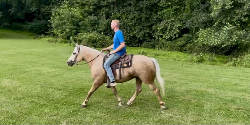 🍁𝒕𝒉𝒆 𝐅𝐀𝐋𝐋 𝑺𝒑𝒆𝒄𝒕𝒂𝒄𝒖𝒍𝒂𝒓🍁 Happening now thru MONDAY | SEPTEMBER 22nd - Available EXCLUSIVELY on HorseBid's website! For more details and to register visit: www.Horsebid.com CONSIGNOR CONTACT: CM Farms 717-875-2061 LOCATION: Gap, PA BREED: Perch/QH REGISTERED: No COLOR: Palomino HEIGHT: 15.2 AGE: 4 GENDER: Mare Who doesn’t love a pretty blonde? 😍 Meet ✨Charlotte✨—she’s a 4-year-old, 15.1–15.2hh Percheron/QH cross palomino mare. This girl is built right—she’s got all the curves, she’s sturdy, and she’s the perfect size for a variety of riders. Not only does she have the beauty, but she was blessed with brains too! She rides both English and Western, and she’s so broke to drive you could hitch her up in your sleep. She is the ideal family horse—you can pile multiple kids on her for a leadline ride or send the husband out on a trail! She always takes care of her riders and is totally a lovebug on the ground—especially with the littles. She is a rose among the thorns and truly one of the nicest mares we’ve come across.🌹 On the trail, Charlotte has packed a variety of riders for us, including complete beginners! She is careful, slow, and surefooted. She is always happy to go out, with a lovely attitude and a curiosity for adventure. Nothing can get under Charlotte’s skin. We have ridden her all over—through the woods, along the highway, in open fields, and into the river (she lovesss a good swim). She’s as unflappable as they come out on the trail. She will lead but generally ends up in the rear due to her slow, plodding nature. She’s in no rush and enjoys taking in the sights for a relaxing ride. She’s as comfortable as a couch and one you could ride all day long. She is absolutely no spook, buck, rear, or bolt—and no silliness (except maybe grabbing a quick snack when she gets the chance). This girl does love her food. 😆 Even if you aren’t a “mare person,” we can guarantee Charlotte will change your mind. She’s lovely and kind in every way. Under harness, Charlotte is experienced and reliable beyond her years. She is able to hitch up solo and drives away from the barn without a worry or care in the world. She’s been on our busy road with all kinds of traffic flying by her (including semi-trucks and loud motorcycles). She is as unflappable as they come and solid in a busy environment. She’ll even stand tied and wait for you to get your groceries and load them in the carriage. She’s been hitched single, double, and to various farm equipment. She’s driven through tunnels, water, farm lanes, construction sites—and the busiest of roads. She’s essentially dummy-proof to drive. She’s light in the reins and responsive to voice signals. We trust her so much under harness, we’ve had our baby on board—she’s never taken a wrong step.💕 Charlotte is also amazing in the ring! This girl is very hard to find a flaw in. She’s like riding a couch—so round and comfortable. She has a solid walk, trot, and canter both ways. Her canter is to die for, and she has the easiest trot to sit! Her favorite gait is probably the walk, and she’s not one that’s ever going to run away with you. She’s happy to mosey around on a loose rein but will happily put in the work and go when asked. Her brakes are impeccable—she will stop on a dime with just a “whoa” or a shift of your seat. She’s packed around the kids and adult beginners like a champ. She’s perfect for leadline rides and genuinely seems to love children with her whole heart. She will lower her head to their height just to get pets and love. She is also able to be athletic and has been coming along lovely over jumps. We’ve been keeping it light with the jumping due to her age, but we couldn’t ask her to do a better job. She’ll pop over cross rails and small verticals in the ring, and she’s even been out cross-country schooling! She is cute and honest in every way. With the right encouragement, she could easily excel in fox hunting or lower-level dressage. She has the proper foundation to go in any direction and is a superstar in every way.⭐️ On the ground, Charlotte is safe to work around. The kids can run around her, brush her, lead her in and out of the field, and tack her up. She’s one that comes up to you in the pasture begging for attention. She loves people and will put her head in your arms for a hug. She’s gentle taking treats and loves her cookies. She is well-behaved for the vet and farrier, and she loads right into the trailer. If you want a solid young horse to continue growing with—one that you don’t have to worry about and can relax on and with—Charlotte is all that and so much more. She’s quickly become a barn favorite, and we have no doubt she will thrive in any environment! We want the best home for this special girl. 💕 ✨Located in Gap, PA✨