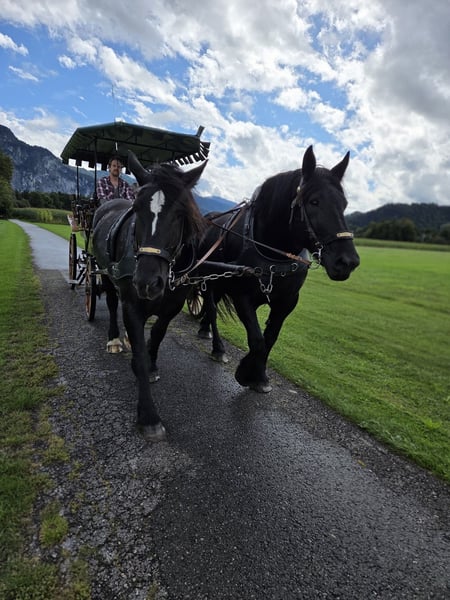 With a heavy heart, I am selling my two dark bay mares, aged 8 and 9 years, both with papers. They are well-schooled in riding and driving, and have good farrier and loading manners. They stand approximately 16.3 hh and 17.2 hh.