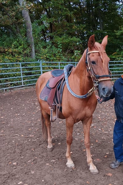 Zum Verkauf im Kundenauftrag steht ein schöner Paso Peruano Wallach, geboren im Jahr 2015. Mit seiner leuchtenden Fuchs Farbe und einem Stockmaß von ca 150 cm ist er ein echter Blickfang. Dieser charmante Wallach überzeugt nicht nur durch seine ansprechende Optik, sondern auch durch sein süßes und sanftes Wesen. Er eignet sich hervorragend für Freizeitreiter, die das besondere Tölt- Erlebnis des Paso Peruano genießen möchten. Er ist gut geritten, hat eine solide Grundausbildung und zeigt sich sowohl auf dem Platz als auch im Gelände fleißig und motiviert. Seine Bewegungen sind elegant und fließend, was ihn zu einem idealen Partner für entspannte Ausritte und vielseitige Aktivitäten macht. Bei Interesse oder für weitere Informationen melden Sie sich gerne.