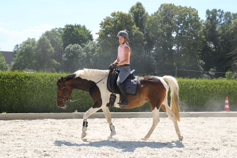 For sale is this 2011-born pinto mare, suitable as a family horse, for leisure riding, breeding, or moderate sport use. She is also of interest for breeding, having produced two offspring so far, both of which have won up to Jumping Horse A with scores of 8. Gentle enough for children to ride and handle. Due to health issues (developing vertebral problems in the back), she is being offered at a significantly reduced price. Farrier and loading friendly. Herd compatible.
