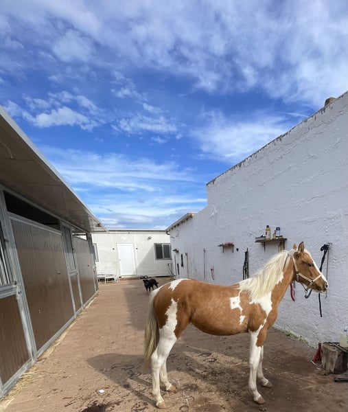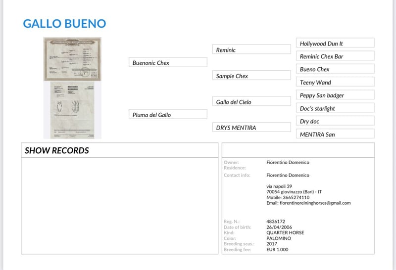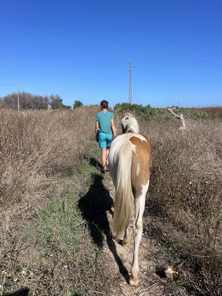 Bell puledra con pedigree italiano. Mamma Mimma (Reining / Barrel) Papà Gallo Bueno (Quarter Americano) La puledra vive con noi in un branco misto, stando fuori tutto l'anno, e viene portata in box con paddock solo di notte. È abituata all'ABC, maneggevole con il cavallo a capo, conosce il ferratura, i bambini, i cani, i gatti e le galline. È molto desiderosa di imparare, sveglia, con un buon desiderio di movimento e un trotto fantastico. Addestrata secondo il metodo Parelli, si fa portare in trailer/contenerne, va a passeggio da sola o in gruppo… investiamo molto tempo e amore nell’educazione dei nostri cavalli.