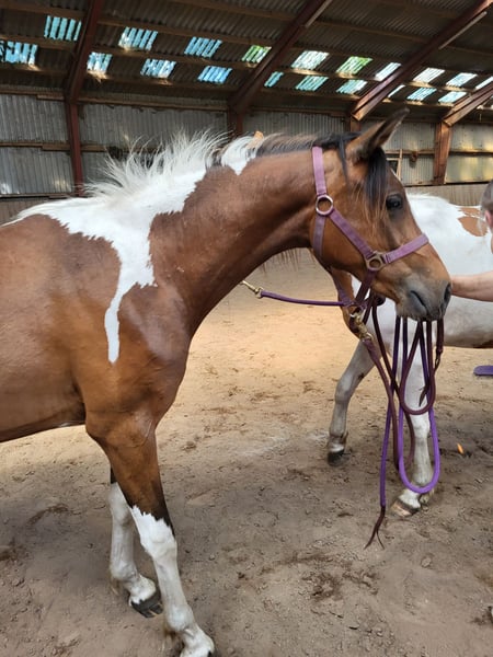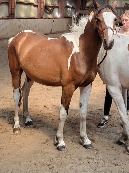 **Verkaufsanzeige: Charmante Pinto-Stute für die Freizeit** Wir freuen uns, Ihnen eine bezaubernde Pinto-Stute vorstellen zu dürfen, die im Jahr 2023 geboren wurde. Diese hübsche Schecke besticht durch ihr lebendiges Erscheinungsbild und ihre freundliche Ausstrahlung. Mit einem Stockmaß von ca. 150 cm ist sie perfekt geeignet für den Freizeitbereich und begeistert durch ihre angenehme Art und ihre Bereitschaft, Neues zu lernen. Diese Pinto-Stute bietet ein vielversprechendes Potenzial für den Freizeitbereich und mehr . Bei Interesse freuen wir uns auf Ihre Kontaktaufnahme, um Ihnen dieses besondere Pferd persönlich vorzustellen.