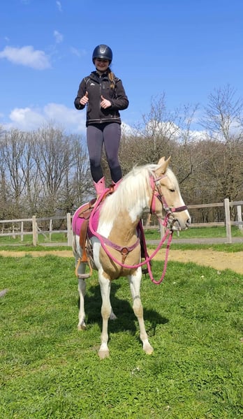 Palomino-Scheck Stute – lieb, zuverlässig & unkompliziert Name: Estrella Alter: 4 Jahre Stockmaß: ca. 1,55 m Preis:6800 AKU : Vorhanden Beschreibung: Estrella ist eine wunderschöne Palomino-Scheck Stute mit einem besonders freundlichen und ausgeglichenen Charakter. Im täglichen Umgang zeigt sie sich sehr brav, ruhig und absolut unkompliziert. Sie ist menschenbezogen, aufmerksam und lässt sich angenehm handeln. Auch unter dem Sattel überzeugt sie durch ihre Gelassenheit und Zuverlässigkeit. Estrella ist einfach zu reiten, arbeitet motiviert mit und gibt ihrem Reiter stets ein sicheres Gefühl. Für ihr junges Alter bringt sie bereits eine tolle Einstellung und viel Nervenstärke mit. Perfekt für: Reiterinnen und Reiter, die eine liebe, ehrliche und unkomplizierte Stute suchen – ideal für Freizeit, Ausritte und weitere Förderung. Pflege & Betreuung: – Regelmäßig entwurmt – Schmied gepflegt – Osteopathisch betreut Zusatzangebote: Westernsättel, Trensen und weiteres Zubehör erhältlich. Service: – Transport kann organisiert werden – 3 Monate Umtauschrecht Proberitt: – 35 € (jedes weitere Pferd 25 €) – Wird beim Kauf am selben Tag angerechnet Preisnachlass bei sofortiger Mitnahme oder Transport am gleichen Tag: – Kategorie 1: 100 € – Kategorie 2 (ab 5.000 €): 250 € Telefon: 0171 – 4001968 Täglich erreichbar von 8–20 Uhr Keine E-Mail oder WhatsApp Alle Angaben ohne Gewähr