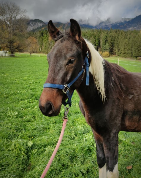"Sandro" ist 2023 geboren und wächst seither im Herdenverband auf. Obwohl er noch Hengst ist zeigt er sich außergewöhnlich ruhig und zugänglich. Für sein Alter zeigt er schon ein sehr korrektes Fundament, Endmaß wird aufgrund der Größe der Eltern (können besichtigt werden) auf 1,56 bis 1,60 geschätzt. Es wurde noch nicht viel mit ihm gearbeitet, bei Verkauf wäre es möglich ihn noch grundauszubilden und/oder vor Ort legen zu lassen.