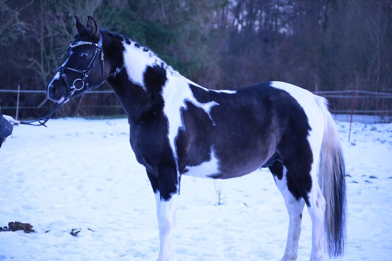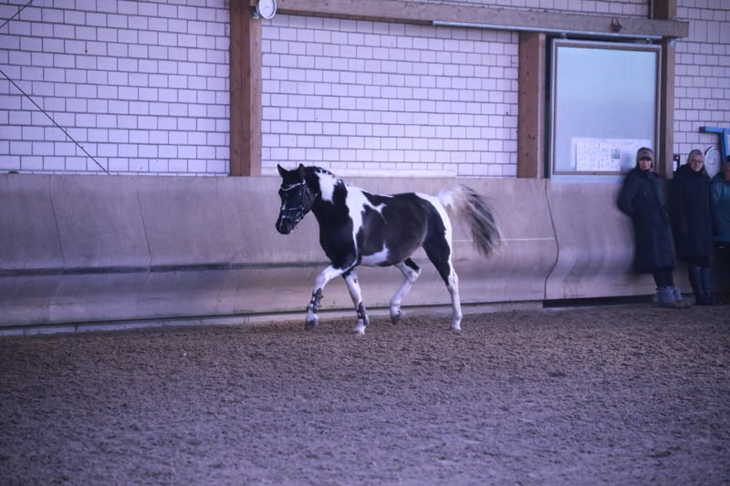 Dieses Jahr steht Crazy Hurricane vom Haimoordeich auch Fremdstuten im Natursprung zur Verfügung. Er ist 147 cm groß und stammt von Champagne Hurricane x El Sharin. Crazy wurde mit 7,6 gekört und hat mit 7,43 seine HLP in Neustadt Dosse absolviert. Er ist deutschlandweit anerkannt. Crazy hat ein kräftiges Fundament, hat sehr gute Grundgangarten, eine tolle Hinterhandaktivität und viel Qualität am Sprung. Auch sein Interieur überzeugt und wurde bei der HLP von den Bereitern in höchsten Tönen gelobt! Crazy ist reinerbig schwarz, vererbt somit keine Füchse! Er hat ein Falbgen und ist ein Tobiano Schecke, frei von Overo. Daher auch für Lewitzer interessant.