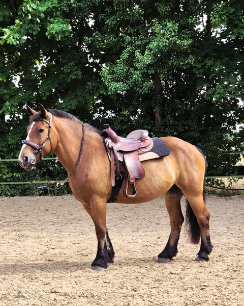 Dear Coldblood Mare Looking for a New Owner... She is an extremely reliable trail horse and is comfortable riding alone or in a group. She is part of a mixed herd and is very easy to handle. She is 11 years old and 16.1 hh. She has a mild summer eczema, but this does not restrict her during riding. We manage it well with Ballisol. She resides in Worfelden/Büttelborn. For more information, please contact via WhatsApp at 01729144745 or 01736873289.