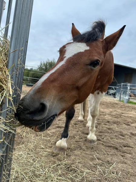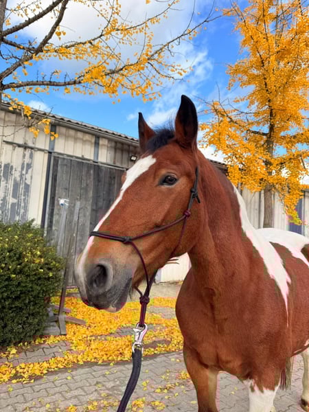 Im Auftrag von unserem Freund müssen wir uns schweren Herzens von Pocahontas trennen. Pocahontas ist 12 Jahre alt und hat ein Stockmaß von 1,55m. Sie gibt total lieb die Hufe und ist dem Tierarzt, dem Hufschmied (Barhufer) und der Physio regelmäßig vorgestellt. Ebenfalls wird sie regelmäßig entwurmt und geimpft. Sie hat keinerlei bekannten Allergien oder Unverträglichkeiten. Selbst in der Rosse zeigt sie keinerlei Auffälligkeiten oder Verhaltensänderung. Poci steht aktuell in Boxenhaltung und kennt keinen Offenstall/ Aktivstall, sie ist verträglich und hatte bei unserer Mini-Herde einen mittleren Rang. Im Transporter fährt sie sehr brav mit. Beim Arbeiten gibt sie sich immer viel Mühe, am Anfang muss man sich bei ihr jedoch durchsetzen, sie ist sehr intelligent und kann unerfahrene Menschen auch mal austricksen, wird dabei aber niemals böse. Sie hat Spaß an der Bodenarbeit und tut alles für Leckerlies. Im Reiten ist sie sehr unkompliziert, bei mir wurde sie durch zeitliche Einschränkungen und eigener Pferde nur selten geritten, zeigte sich dabei aber immer brav, ruhig und vermittelte dem Reiter ein sicheres Gefühl. Auch Spazieren gehen ist für Poci kein Problem wenn gegenseitige Vertrauen besteht, anfangs ist sie in neuer Umgebung immer etwas nervös. Wenn sie jedoch merkt, dass sie dem Menschen vertrauen kann zeigt sie sich sehr mutig und springt maximal zur Seite, achtet dabei jedoch auf den Menschen. Sie war auch schon mit Reiter im Gelände und wurde währendessen von Boden unterstütz, mit der richtigen Person der sie vertraut ist sie ein absolutes Verlasspferd. Poci hat einen vorhanden Equidenpass und es gilt, Platz vor Preis. Wir möchten sie in ein schönes und für immer Zuhause abgeben!! Sie wird mit Ausrüstung und Maß-Sattel verkauft