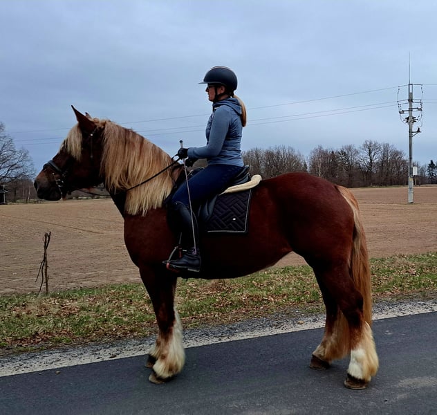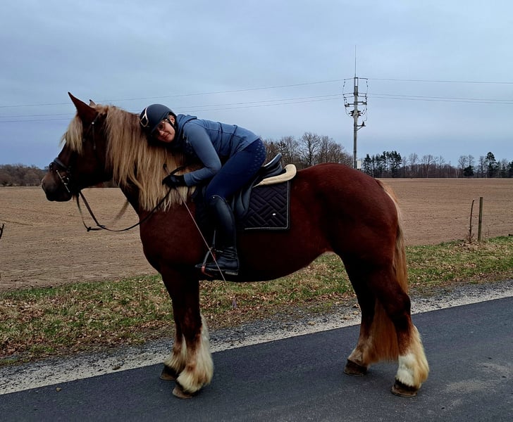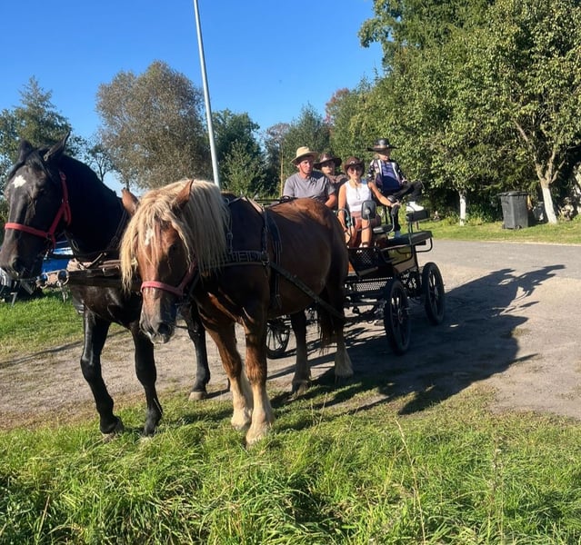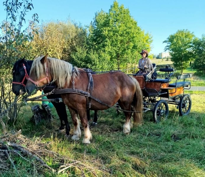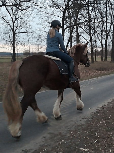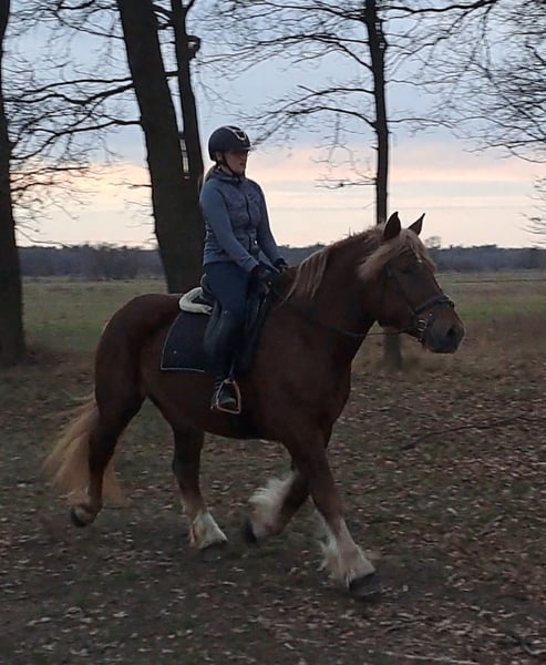 Wunderschöne, großramige Stute Didi - Kaltblut ca. 1,66 m. Freizeitmässig geritten und gefahren. Sie war benutzt in Kutsche als Lehrmeisterin für junge Pferde. Perfekt als Familienpferd/ Geländepferd/ als Therapiepferd Sie geht unter Sattel in alle 3 GGA, geht alleine ins Gelände. Kennt Longe, mag gerne Spazieren gehen. Ist Verlass und absolut unerschrocken. Didi mag gerne Kindern- putzen, führen ist kein Problem. Sie ist absolut ein Traumpferdchen für Kindern und Erwachsene. In Umgang ist unkompliziert. Sie ist fit, gesund, ohne Mankos. Offenstall geeignet, Herdenverträglich. Videos vorhanden Transport möglich.