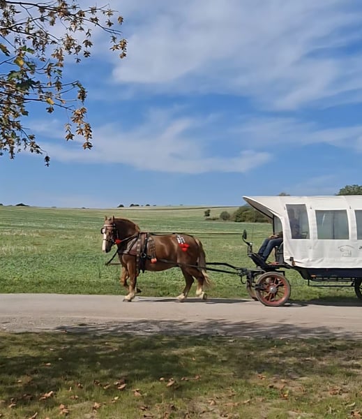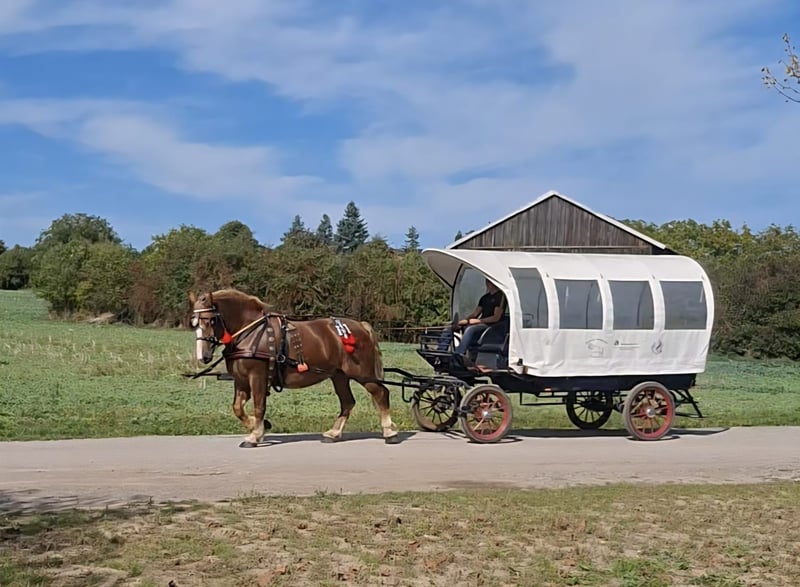 Beautiful draft horse mare for sale. Her name is Resi - 7 years old - 1.68m. She is a very sweet, affectionate mare and is ridden out on trails, both in a group and alone. She has nice, smooth gaits and is comfortable to sit on. Beginners, re-riders, or heavier riders are no problem for her. Resi has also been driven both single and double. She is safe for pulling and on the road. Tractors, motorcycles, barking dogs, children... she remains calm around them. Familiar with carriage and wagon rides. If interested, just give us a call. Trial riding and driving is possible.
