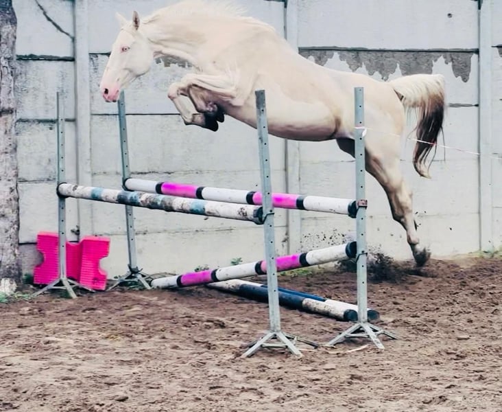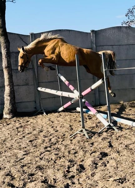 Palomino warmblood mare born 2022 Jumping pedigree: https://www.horsetelex.com/horses/pedigree/2513800/trinity-j Sire Urano de Cour au Bois (Baloubet du Rouet x Kannan): https://www.gfeweb.com/fr/liste-etalons/urano-cour-bois-cheval-sport-belge-alezan,98.html Young mare not for amateurs now, she needs to work with somebody with experience. Good price for the right experienced home. Last photos: sire, dam, and half-brother. Video can be sent on WhatsApp Located in Poland Facebook: @PalominoJaskulscy