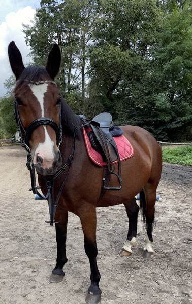 We are selling our beloved mare (Polish half-bred), 6 years old and approximately 15.5 hh. She was born as a twin, which is why she is slightly smaller than average. Character & Training: She is a very gentle, calm, and relaxed horse that tends to need a bit of encouragement. Children regularly ride her on weekends at the riding school under supervision. However, she is better suited for more experienced riders, as she sometimes takes advantage of her comfort and occasionally bucks when cantering. Overall, she remains well-behaved, rarely spooky, and easy to handle. She is a versatile leisure horse suitable for children, ideal for riding out and groundwork. Handling & Care: - Stands patiently for grooming and tacking up - Gives all hooves easily Health & Housing: - No injuries or known health issues - Rides reliably in the field, both alone and in a group - Enjoys water crossings Experience: Our mare has participated in several events: - Hubertus Festival at our riding center (approx. 20-minute ride — regular small festival with playful activities for children, which she always handles calmly) - Easter riding event in Ralbitz (around 20 km) — she has successfully participated twice https://regio.outdooractive.com/mobile/oar-oberlausitz/de/tour/radfahren/osterreiter-prozession-wittichenau-ralbitz/37941026/?utm_source=whatsapp&utm_medium=social&utm_campaign=user-shared-social-content We are looking for a loving and responsible home for our mare. She will only be sold to a good, caring owner.
