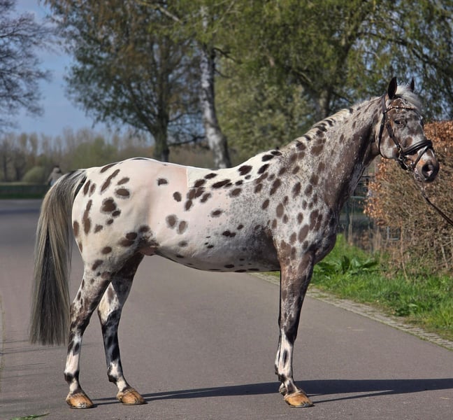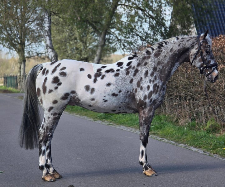 Tauchen Sie ein in die Welt von Eleganz und Vielseitigkeit mit diesem außergewöhnlichen 10-jährigen Appaloosa-Hengst. Dieses Pferd ist kein gewöhnliches Tier; es ist eine seltene Erscheinung, die die Herzen von Pferdeliebhabern im Sturm erobert. Mit seinem bezaubernden Aussehen und seinem unverkennbaren Talent ist er bereit, in jeder Disziplin, die Sie ihm anbieten, zu begeistern. Dieser Hengst ist ein Meister im Springen, ausgestattet mit natürlichem Talent, das sich in müheloser Eleganz über die Hindernisse zeigt. Ob Sie davon träumen, die Hunter-Klasse zu erobern oder Parcours zu meistern – er besitzt das Potenzial, Ihre Erwartungen zu übertreffen. Seine athletische Konstitution und seine kraftvolle Springtechnik machen ihn zu einem ernstzunehmenden Konkurrenten, während sein Gehorsam und sein kooperatives Wesen ihn zu einem angenehmen Partner machen. Doch dieser Appaloosa ist mehr als nur ein Springtalent. Er verfügt über die Flexibilität, Eleganz und den Gehorsam, um auch in der Dressur zu glänzen. Seine geschmeidigen Gänge und seine Lernbereitschaft machen ihn zum idealen Partner für den Reiter, der nach einem vielseitigen Pferd sucht, das in mehreren Disziplinen überzeugen kann. Mit seinem auffälligen Erscheinungsbild und seinem unverwechselbaren Charisma wird er zweifellos alle Blicke auf sich ziehen, egal wo Sie unterwegs sind. Kurz gesagt: Dieser 10-jährige Appaloosa-Hengst ist eine einzigartige Gelegenheit für den ernsthaften Reiter, der ein Pferd mit Talent, Ausstrahlung und einem großartigen Charakter sucht. Verpassen Sie nicht die Chance, einen Diamanten in der Pferdewelt zu erwerben und gemeinsam eine erfolgreiche Zukunft zu gestalten! Kontaktieren Sie uns noch heute für ein persönliches Kennenlernen und entdecken Sie selbst die Magie dieses außergewöhnlichen Appaloosa-Hengsts. Wir stehen bereit, um all Ihre Fragen zu beantworten und Sie bei der Verwirklichung Ihrer Pferdeträume zu unterstützen!