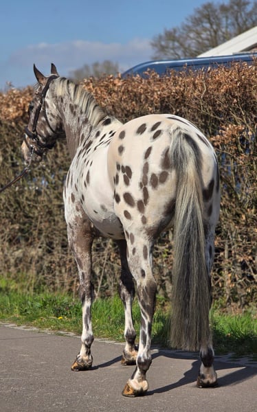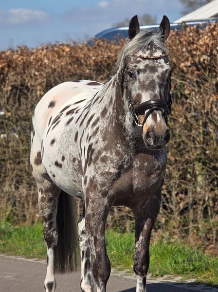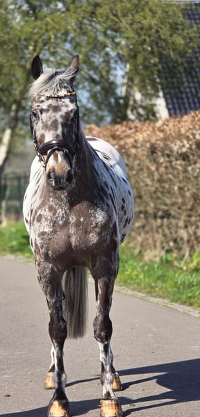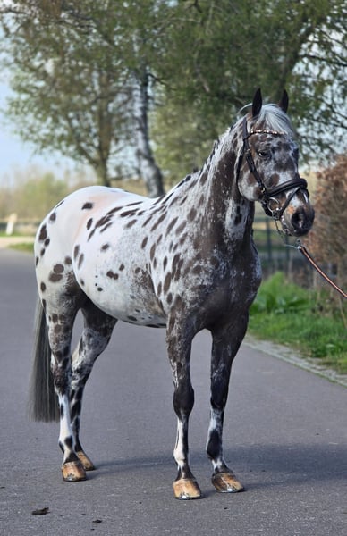 Stap binnen in de wereld van elegantie en veelzijdigheid met deze uitzonderlijke 10-jarige Appaloosa ruin. Dit is geen gewoon paard; het is een zeldzame verschijning die de harten van paardenliefhebbers sneller doet kloppen. Met zijn betoverende looks en onmiskenbare talent is hij klaar om de show te stelen in elke discipline die u hem biedt. Deze ruin is een meester in de sprong, met een natuurlijk talent dat zich vertaalt in moeiteloze elegantie over de hindernissen. Of u nu droomt van het veroveren van de hunterklasse of het bedwingen van de springparcoursen, hij heeft het potentieel om uw ambities te overtreffen. Zijn atletische bouw en krachtige sprongtechniek maken hem tot een serieuze concurrent, terwijl zijn gehoorzaamheid en meewerkende karakter hem tot een plezierige partner maken om mee te werken. Maar deze Appaloosa is meer dan alleen een springtalent. Hij beschikt over de souplesse, elegantie en gehoorzaamheid om ook in de dressuurring te schitteren. Zijn comfortabele gangen en bereidwilligheid om te leren maken hem tot een ideale partner voor de ruiter die op zoek is naar een veelzijdig paard dat in staat is om te excelleren in meerdere disciplines. Met zijn opvallende uiterlijk en onmiskenbare charisma zal hij ongetwijfeld de aandacht trekken, waar u ook gaat. Kortom, deze 10-jarige Appaloosa ruin is een unieke kans voor de serieuze ruiter die op zoek is naar een paard met talent, uitstraling en een gouden karakter. Mis deze kans niet om een diamant in de paardenwereld te bemachtigen en samen een glansrijke toekomst tegemoet te gaan! Neem vandaag nog contact met ons op voor een persoonlijke kennismaking en ontdek zelf de magie van deze uitzonderlijke Appaloosa ruin. We staan klaar om al uw vragen te beantwoorden en u te begeleiden bij het realiseren van uw dromen!