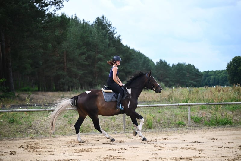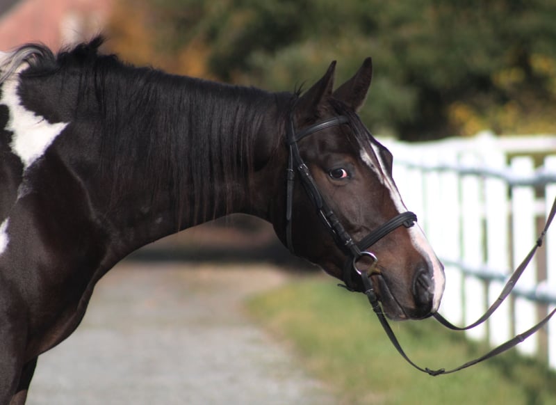 For sale: 4-year-old piebald lovely gelding. Tall, frame-like, correctly built on strong straight legs and robust deep hooves. Beautifully colored piebald in a chocolate shade. Very calm, pro-human character. Brave, easy-going, and calm in handling and under saddle. He is not electric or excitable, a wise-thinking horse, willing to cooperate with people. Initially broken in last autumn, without rushing or pressure. Currently ridden in and out into the fields. Very easy, calm, and brave, suitable for beginner or novice riders. Safe in traffic, with dogs, tractors, etc. The horse shows great jumping predispositions and very good technique. Good movement, gallops very nicely. Great jumping pedigree from Polish Anglo-Arab horses: Father Jaśmin: Extremely handsome, correct in build, endowed with very good movement and jumping technique. The horse, characterized by good health and balanced temperament, was the Vice-Champion in tests in 2010, which he passed with top results. The horse became the Vice-Champion and gold medalist of the national championship in 2011. Jaśmin comes from the very distinguished female line of the mare Śmigła, from which such horses as: Jard: IV place at the German Eventing Championships 2022, Jaskinia: II place Polish Championship C class 2004, Jamajka: IV place Polish Championship C class 2008. Grandfather Frazes (Level 150 cm): An Anglo-Arabian stallion bred and owned by the State Stud. As a young horse, this very good jumper underwent sports training in both eventing and show jumping. In 2003, he won the title of Polish Champion of Young Eventing Horses in the four-year-old category. In 2004, he placed 12th (out of 66 competing horses) at the Polish Young Horses Jumping Championships in the five-year-old category, making only one mistake during the three days of competition. In 2006, he came 5th at the Polish Championships in jumping in the seven-year-old category. He successfully competed in jumping from 2007 to 2009. Frazes's offspring presented themselves positively at the National Youth Championships of Małopolska (Anglo-Arab) Horses in Białka and (older generations) at the Training Plant. Two daughters from the first youth generation by Frazes received very good marks and took the two top places in the performance tests in 2009. In the same year, Frazes' son, Dionizos, won the stallion performance test at Bogusławice with excellent marks, and a year later Jaśmin came second, also receiving a very good mark. In 2010, Frazes went on a few months' lease to France. Further in the pedigree, we have the outstanding stallion Arcus xx (level 160 cm), stallions Sebastian (140 cm), Paszkwil, Agrest... A very promising horse for sports in a beautiful, unusual color. Current height 167/8 cm, target approx. 169/170 cm. Healthy, fit, well-groomed, fed with high-quality feed, daily on the paddock with a group of friends. Located 50 km from the PL/D border. Price + 8% VAT. Transport can be arranged. More on WhatsApp +48 513 179 245.