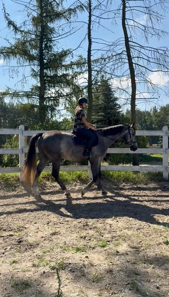 Uroczy młody wałach z najlepszych linii krwi szuka nowego, dobrego domu. Wysoki, poprawnie zbudowany z idealnymi nogami, dobrymi kopytami. Bardzo dobre 3 chody, szczególnie doskonały galop. Erdon to bardzo miły i łatwy w obsłudze koń, ma bardzo spokojny i przyjazny charakter. Jego światowej klasy pochodzenie czyni go doskonałym kandydatem do dużego sportu. Ma ogromny potencjał, idealny styl skoku. Co najmniej 10 x rodzeństwa startuje na poziomie 160 cm 5 x na poziomie 150 cm 33 x na poziomie 140/145 cm Dorastał na dużych łąkach z grupą innych młodych koni. Miał czas, aby dojrzeć i zdrowo rosnąć. Absolutnie żadnych wad ani złych zachowań, przyjazny dla innych koni. Codziennie na dużych padokach. Obecnie 173 cm, docelowo około 174/5 cm Powoli rozpoczął trening. Jak dotąd zna siodło i jeźdźca. Cena wzrośnie wraz z poziomem treningu. Ma aktualne CZYSTE RTG (7/2025) Szczepiony, odrobaczony na bieżąco. Znajduje się 50 km od granicy PL/D. Filmy i więcej informacji WhatsApp + 48 513 179 245 Transport może być zorganizowany.