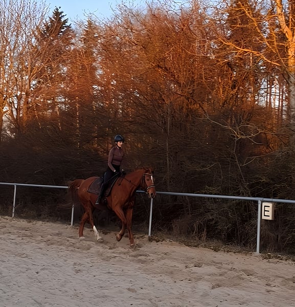 Schweren Herzens muss ich nun diesen Schritt gehen. Ich suche für meine liebevolle Stute ein neues Zuhause, in dem sie rundum glücklich sein kann. Sie ist 2014 geboren, ein polnisches Warmblut mit einem Stockmaß von 1,56 und einem Körpergewicht von 500Kg und ein absolutes Herzenspferd. Anhänglich, verschmust und sehr ehrlich wenn man gut mit ihr umgeht. Sie zeigt klar, wenn ihr etwas unangenehm ist, tritt oder beißt aber nicht. Wer lernt, ihre Körpersprache zu lesen, wird einen treuen, verständnisvollen Freund fürs Leben gewinnen. Mit anderen Pferden ist sie sehr verträglich, da gab es noch nie probleme. Sie ist also rangniedrig. Luna war früher im Schulbetrieb, deshalb möchte ich auf keinen Fall, dass sie wieder in einen solchen Alltag kommt. Aktuell wird sie zwei Mal pro Woche geritten, zwei Mal pro Woche locker longiert und einmal Bodenarbeit ansonsten genießt sie ihre Koppelzeit. Sie ist ein Diätpferd und neigt zu Übergewicht, besonders im Sommer, daher muss die Fütterung sorgfältig angepasst werden. Im Sommer lebt sie rund um die Uhr auf der Koppel, im Winter steht ihr eine Box mit Paddock zur Verfügung. Sie ist barhuf, hat gesunde, stabile Hufe, ein unauffälliges Blutbild (von 2024) und bisher keine Operationen. Mir ist besonders wichtig, dass sie gesund und gymnastizierend geritten/ gearbeitet wird. Sie liebt das feine Arbeiten, reagiert gut auf korrekte Hilfen und macht zum Beispiel Schenkelweichen am Halsring. Druck oder übermäßige Zügelführung sind nichts für sie und das wünsche ich mir auch nicht für sie. Luna braucht jemanden, der Freude daran hat, sie regelmäßig und gesund zu bewegen. Sie ist immer super motiviert und hat an allem spaß egal ob Stangenarbeit, Dressurarbeit, Tricks, ... Früher hatte sie starken Gurt- und Sattelzwang aufgrund von einem unpassenden Sattel. Sie hat einen Maßsattel bekommen und seitdem zeigt sie kein Gurt- oder Sattelzwang mehr bei mir und meiner Schwester. Bei fremden Personen ist sie anfangs skeptisch und reagiert auf Berührungen sensibel aber nicht bösartig. Charakterlich ist sie eine Stute, die gehört und verstanden werden möchte. Sie testet Fremde manchmal aus, ist aber unkompliziert und absolut cool, wenn man fein mit ihr arbeitet. Vertrauen und ein respektvoller Umgang stehen für sie an erster Stelle. Ich möchte sie auch als reines Freizeitpferd abgeben ohne Turnierambitionen. Sie ist überhaupt nicht schreckhaft und man kann eigentlich alles mit ihr machen. Mir liegt sehr am Herzen, dass sie in erfahrene Hände kommt. Deshalb möchte ich sie zunächst Ein bis zwei Monate zur Verfügung stellen, damit wir uns gegenseitig kennenlernen können und sie sich an die neue Person gewöhnen kann. Erst wenn das Bauchgefühl von beiden Seiten stimmt, erfolgt der endgültige Verkauf. Ich suche jemanden, der Zeit, Erfahrung und Freude am gesund erhaltenden Training hat und meiner Stute das liebevolle Fünf-Sterne-Zuhause bieten kann, das sie verdient. Abgegeben wird sie mit Maßsattel (+5500€ VB). Weiteres Zubehör würde ich einfach so mitabgeben. AKU darf auf eigene Kosten gerne gemacht werden Weitere Infos erfolgen bei der privaten Kontaktaufnahme. Bitte stellen sie sich vor und erzählen sie gerne schon etwas über sich und ihre Vorstellungen