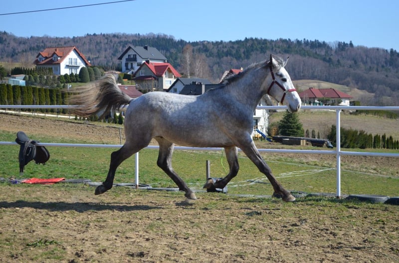 Wyjątkowo perspektywiczny ogier skokowy – 3 lata | C-Quattro PS Na sprzedaż bardzo obiecujący ogier skokowy w wieku prawie 3 lat, o nowoczesnym typie sportowym, bardzo dobrym galopie i świetnym pochodzeniu skokowym. Ojciec: C-Quattro PS (Chacoon Blue / Quattro B) – ogier po znakomitym Chacoon Blue, jednym z najbardziej cenionych współczesnych ogierów skokowych, który przekazuje potomstwu siłę, świetną technikę nad przeszkodą oraz bardzo dobry galop. W dalszym rodowodzie znajduje się również wybitny Quattro B, ogier który zapisał się w hodowli jako producent koni o ogromnych możliwościach sportowych, startujących na najwyższym poziomie. Połączenie tych dwóch linii daje konie nowoczesne, atletyczne, z dużą siłą skoku i bardzo dobrymi predyspozycjami do sportu. Matka: Barka – klacz przekazująca potomstwu dobry charakter, zrównoważenie oraz poprawną budowę. Ogier prawidłowo zbudowany, o lekkim, sportowym typie. Posiada bardzo dobry, elastyczny galop oraz naturalną równowagę. Koń wychowywany w prawidłowych warunkach, zdrowy, regularnie werkowany, przyzwyczajony do podstawowej obsługi. W kontakcie spokojny, ciekawski i chętny do współpracy. Młody koń z bardzo dobrą bazą do dalszego treningu i dużym potencjałem w kierunku sportu skokowego.