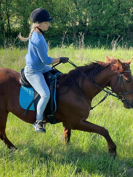Allrounder mit Potenzial – 2017 geboren, 149 cm Mein fuchsfarbener Wallach (geb. 2017, 149 cm) sucht ein neues Zuhause. Er bringt sehr viel Potenzial mit, um vielseitig eingesetzt zu werden – sei es Freizeit, Polo oder eine andere Richtung. Er ist treu, verschmust und meint es nie böse. Er möchte lernen und braucht dafür einen Reiter, der ihm klare Anleitungen gibt. Anfänger sind deshalb nicht ideal, mit etwas Erfahrung hat man aber ein Pferd, das sich sehr schnell entwickelt und viel Freude bereitet. Ins Gelände geht er auch alleine, allerdings sollte der Reiter Sicherheit mitbringen. In Gesellschaft fühlt er sich entspannter. Vom Boden aus ist er sehr unkompliziert – Kinder können ihn problemlos putzen, führen und mit ihm arbeiten. Unter dem Sattel ist er motiviert, zeigt manchmal seine Energie, aber nie in böser Absicht. Mit dem richtigen Training lässt sich mit ihm noch sehr viel erreichen – er hat die besten Voraussetzungen, sich weiterzuentwickeln und ein zuverlässiger Partner in unterschiedlichen Bereichen zu werden. Ich wünsche mir für ihn ein gutes Zuhause, in dem er gefördert wird und man Spaß daran hat, sein großes Potenzial gemeinsam zu entdecken.