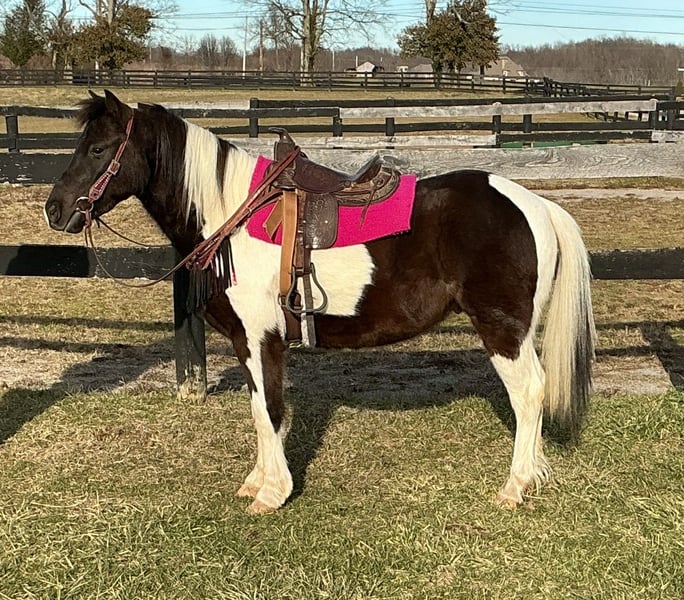 "AVAILABLE ON ONLINE HORSE AUCTION AT www.MagicHorseAuction.com BIDDING OPEN NOW thru TUESDAY | FEBRUARY 3RD! BUY IT NOW AVAILABLE! *Final price will be determined on auction site* CONSIGNOR CONTACT INFO: DEBBIE GRIER #859-272-7751 LOCATION: LEXINGTON, KY" Wyatt is the kind of pony everyone is looking for!! He is the cutest, sweetest little guy! AND he is beautiful! He rides english and western, in or out of the arena and even jumps! He is a very fancy mover and would really excel in the english ring. He is very cute over fences and likes to jump. He will also go down the trail and loves that too! He is a 12 hand, 5 yr old gelding. He is looking for his own kid to love!!