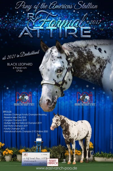 „ER Attire‘s black Widow“ Diese wunderschöne Stute aus bewährter Zucht,sucht ihren Menschen!!! „Widow“ wurde im April 2024 geboren und hat sofort alle in ihren Bann gezogen…nicht nur ihre einzigartige Optik macht sie zu einem echten Hingucker sondern auch ihr perfektes Exterieur….super gerade Beine mit kräftigen Gelenken und Muskeln soweit das Auge reicht,ihr feines Köpfchen rundet ihr tolles Gesamtpaket ab…bestätigt wurde dies auf der Zuchtschau! Charakterlich ist sie super schlau und anhänglich und hat vor nichts Angst! Sie ist absolut gesund, 6 Panel n/n und eine kleine AKU liegt bereits vor! Ihr Vater,welcher von uns 2021 durch uns aus den USA importiert wurde, bringt zahlreiche sportliche Erfolge mit wodurch „Widow“ gleichermaßen gut für den Sport,Freizeitbereich oder die Zucht geeignet ist! Ihre Mama ist eine sogenannte „Eierlegende Wollmilchsau“ und gibt diesen tollen Charakter zuverlässig an ihre Fohlen weiter! „Widow“ wächst artgerecht in der Gruppe auf großen Weiden auf und eine gute Erziehung sowie Versorgung sind für uns selbstverständlich! Bei Interesse kontaktieren sie uns gerne! Transport möglich! Ratenzahlung möglich! Aufzucht möglich! www.east-ranch-poa.de Die letzten beiden Bilder zeigen die Eltern!