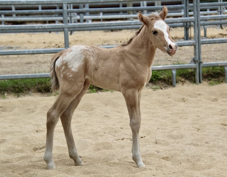 Sire: PR All Spots on Chicago ( letzten Bilder ) Dam: Princess Twister Doc Ein ganz besonderes Pony of the Americas Hengstfohlen sucht seinen Menschen! Dieses typvolle Fohlen überzeugt bereits jetzt mit einem tollen Gebäude: ein harmonischer Körperbau, ein kurzer, kräftiger Rücken und ein besonders feines, ausdrucksstarkes Köpfchen machen ihn zu einem echten Blickfang. Doch nicht nur optisch weiß er zu begeistern – auch sein Charakter lässt keine Wünsche offen. Er zeigt sich von Anfang an freundlich, neugierig und sehr zugänglich im Umgang mit Menschen. Abstammungsmäßig lässt dieses Fohlen ebenfalls keine Wünsche offen: Er stammt aus einer hervorragenden Linie, sein Vater ist gekört und steht für Qualität und Verlässlichkeit. Aktuell wächst der kleine Hengst im Herdenverband mit anderen Fohlen auf, wodurch er bestens sozialisiert ist und ein gesundes Verhalten entwickelt. Ein vielversprechender junger Begleiter mit besten Voraussetzungen für Sport, Freizeit oder Zucht! Bei Interesse erzähle ich gern mehr über den kleinen Mann Ratenzahlung möglich www.east-ranch-poa.de