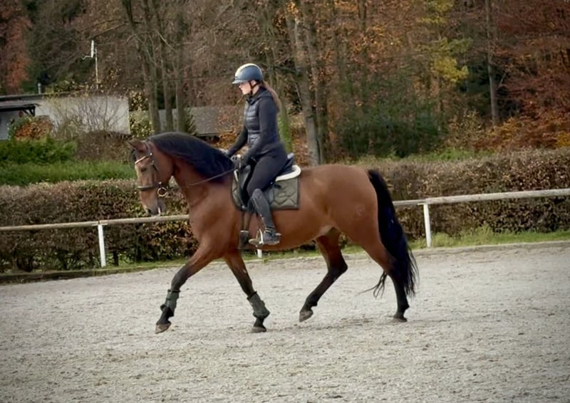 Name: Coliseo XV Breed: P.R.E. (Pure Spanish Horse) Gender: Gelding Date of Birth: December 1, 2015 Age: 11 years Height: 1.60 m (approximately 16.1 hh) Color: Bay Pedigree: with pedigree documentation Temperament: friendly and people-oriented, reliable, patient, curious, intelligent, brave Training/ suitability: ridden, dressage, leisure riding, baroque riding, working equitation Trail Experience: dependable, fearless, steady nerves, confident alone and in a group Health: dewormed, vaccinated, barefoot, eczema-free, teeth checked, osteopathically treated Stabling: box stall, open stable Special features: good basic gaits, very comfortable rider, farrier- and loading-friendly, herd-compatible The properties listed are based on our personal assessment and do not constitute guaranteed characteristics. Price: €7,900 (including VAT) Have we piqued your interest? To give you a better impression of Coliseo, we are happy to send you his riding video. Of course, we are available for a detailed description of the horse, personal consultation, and to answer all your questions by phone. Please feel free to contact us anytime via WhatsApp or call us at: +49 151 19487595 Our phone hours are daily from 7:00 AM to 1:30 PM and again from 8:00 PM. We look forward to hearing from you! A clinical or radiological pre-purchase examination can be arranged with the veterinarian of your choice. Coliseo can be delivered safely and comfortably to his new home. We take care of all necessary preparations and transportation so that your new horse arrives stress-free, well-cared-for, insured, and in good health. Currently, we offer a carefully selected range of sale horses. With us, you are sure to find your dream horse. Feel free to visit us on our homepage: www.marvinsroyalhorses.de. Dear customers, we are happy to introduce you to our horses. You are welcome to lead, groom, saddle, lunge, do groundwork, or try riding in the riding hall, on the arena, or in the field to get to know your new family member better. This costs €40 for one horse, and €30 for each additional horse, and will be refunded upon purchase. Our address: Ferdinand Grube 50 53577 Neustadt-Wied Google Maps: marvinsroyalhorses