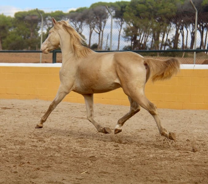 This stunning PRE gelding in a special color is searching for his soulmate. His papers list his color as Cremello, but visually he appears more like an Isabelo. Temperament-wise, he is a very sweet, friendly, curious, and polite young horse. He is 3 years old and currently approximately 1.54 m (15.1 hh) tall. Fully grown, we estimate him to reach about 1.57-1.58 m (15.3-15.4 hh). He already knows the basics of foal training and is currently being prepared for saddle breaking, which he handles very patiently and willingly. In the future, we see him excelling in many disciplines, including dressage, working equitation, show jumping, or simply as a leisure partner. He spent his early years in a large herd of mares and foals on pasture, and at around 8 months old, he was separated from his mother and able to develop in a young stallion herd. He has now been stabled and is familiar with the box. X-rays have already been taken and show no abnormalities. Location: Barcelona, Spain. A meeting in Spain and transportation can be arranged without any issues.